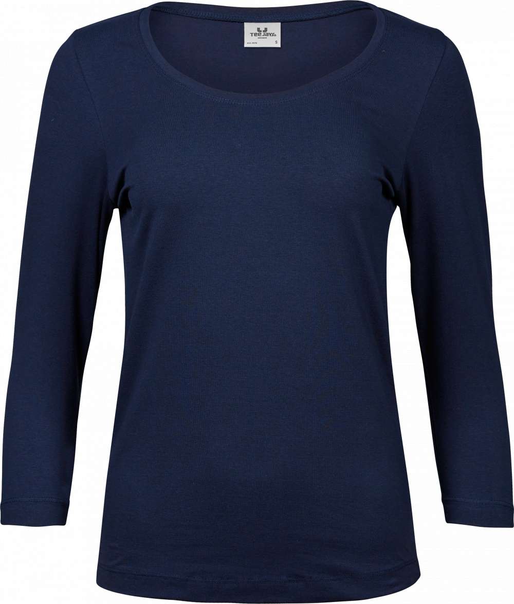 Klassisk figurnära t-shirt med 3/4-ärmar; perfekt för vardagsbruk eller som en del av en damuniform. Blandningen av kammad bomull och elastan ger optimal rörelsefrihet och flexibilitet.