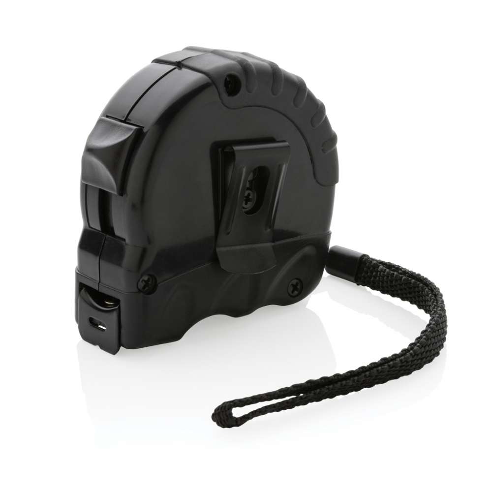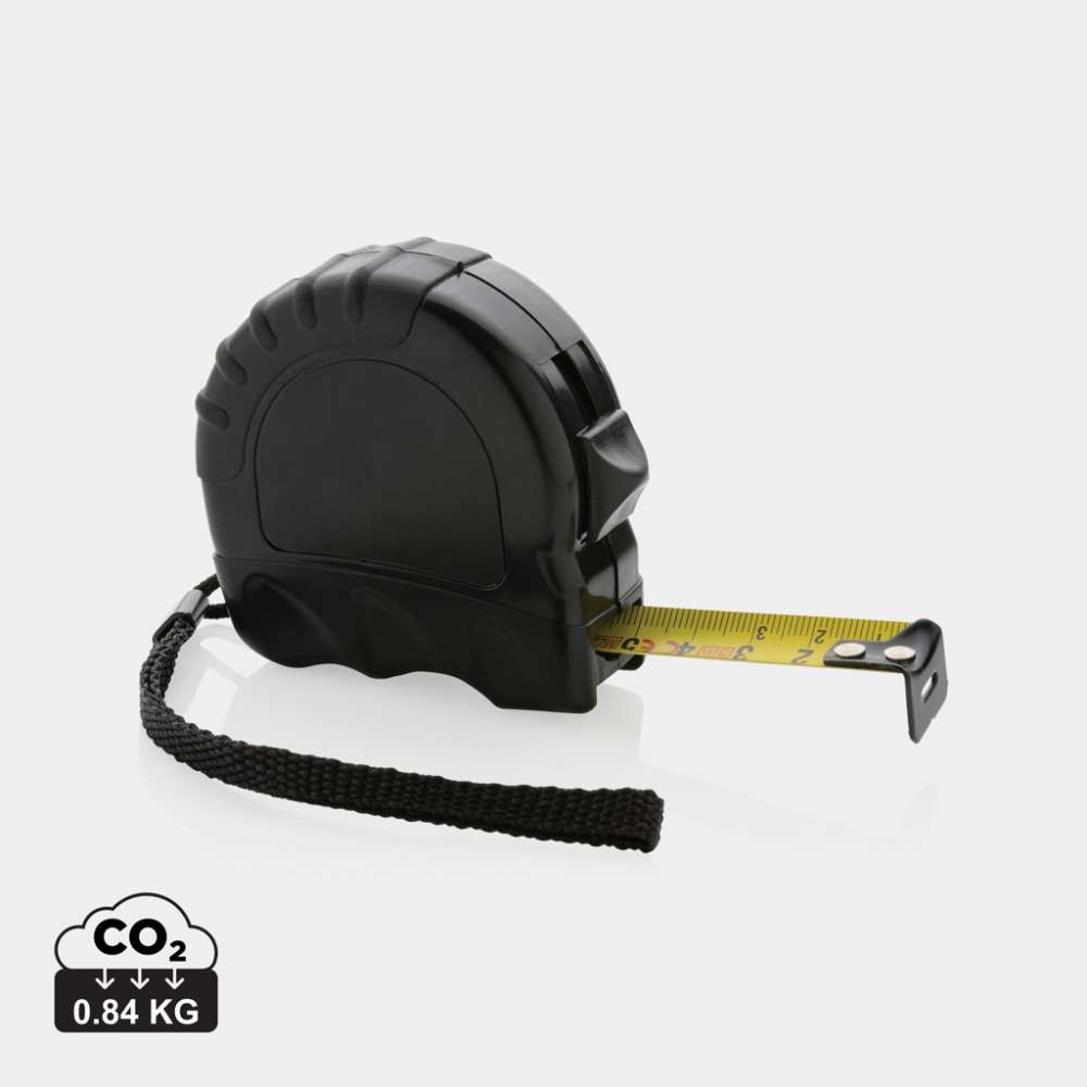 5M måttband tillverkat av RCS (Recycled Claim Standard) certifierad återvunnen ABS. Totalt återvunnet innehåll: 17% baserat på total produktvikt. RCS certifiering säkerställer en helt certifierad leveranskedja av de återvunna materialen. TRP gummi för smidigt grepp. Med utlösnings/låsknapp. 19mm ensidigt gult band med svart krok i kolstål. Med handledsrem i polyester. Levereras i FSC® mix kraft förpackning.