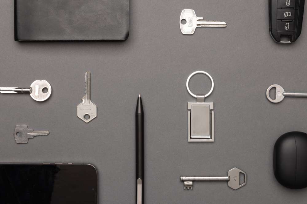 Lyxig nyckelring med telefonställ tillverkad av RCS-återvunnen zinklegering. Totalt återvunnet innehåll: 86% baserat på total produktvikt. RCS-certifiering garanterar en helt certifierad leveranskedja för de återvunna materialen. Levereras i en papperspåse.