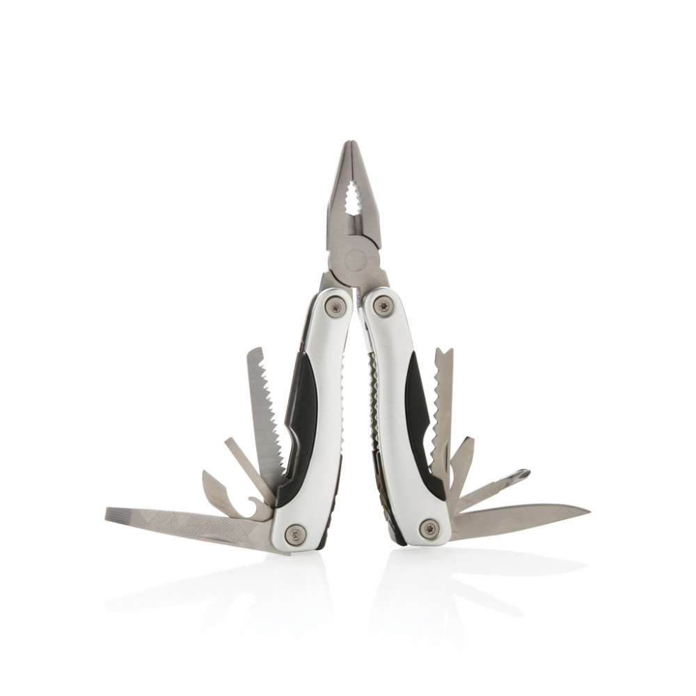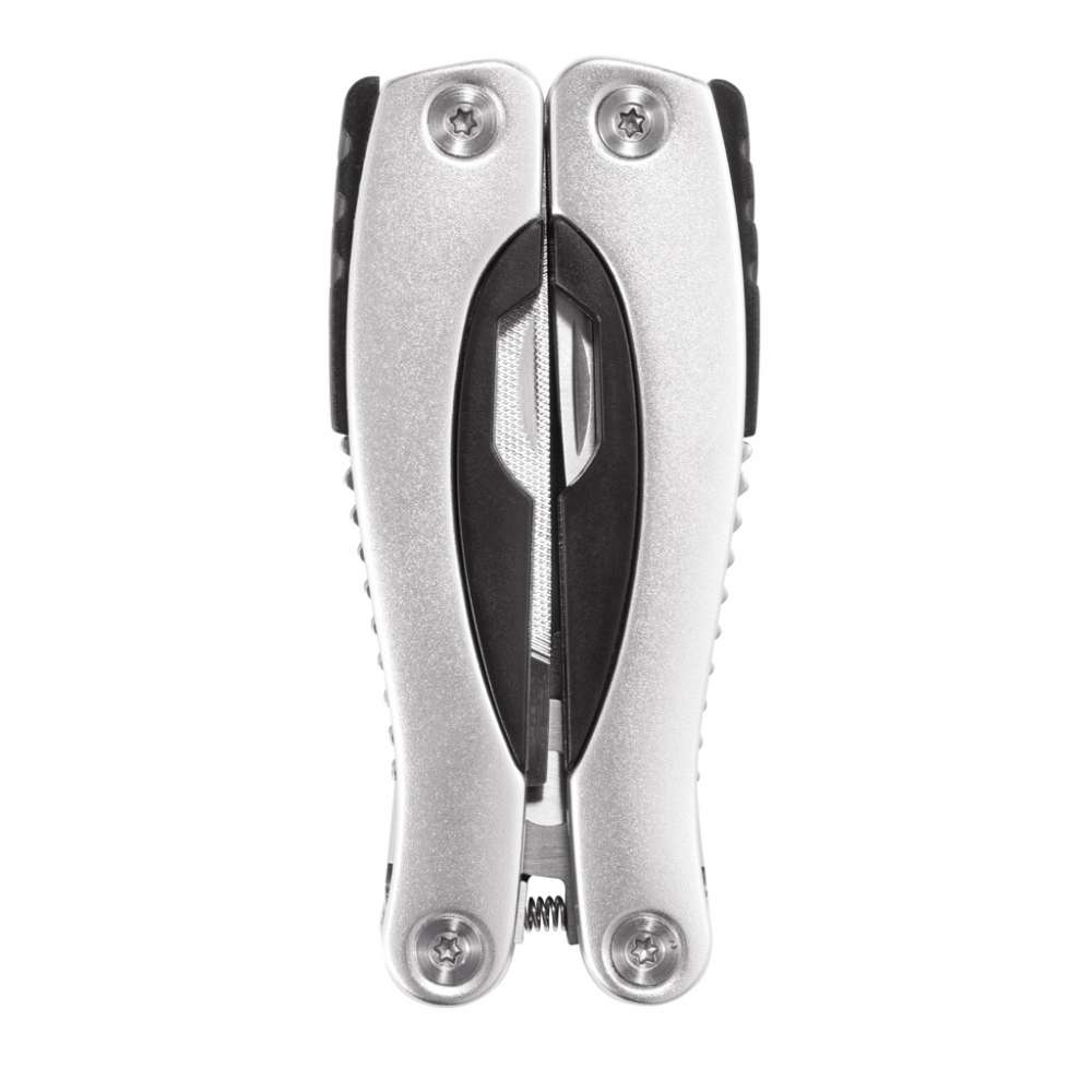 Multitool i aluminium, 14 funktioner. Svart fodral medföljer.