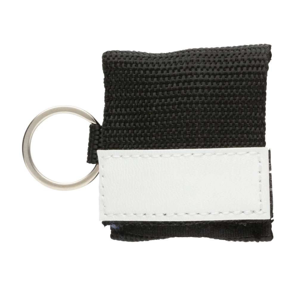Nyckelring med mun mot mun-mask (EN 13485:2016). Med backventil. Observera: Denna artikel kan endast tryckas i svart.
