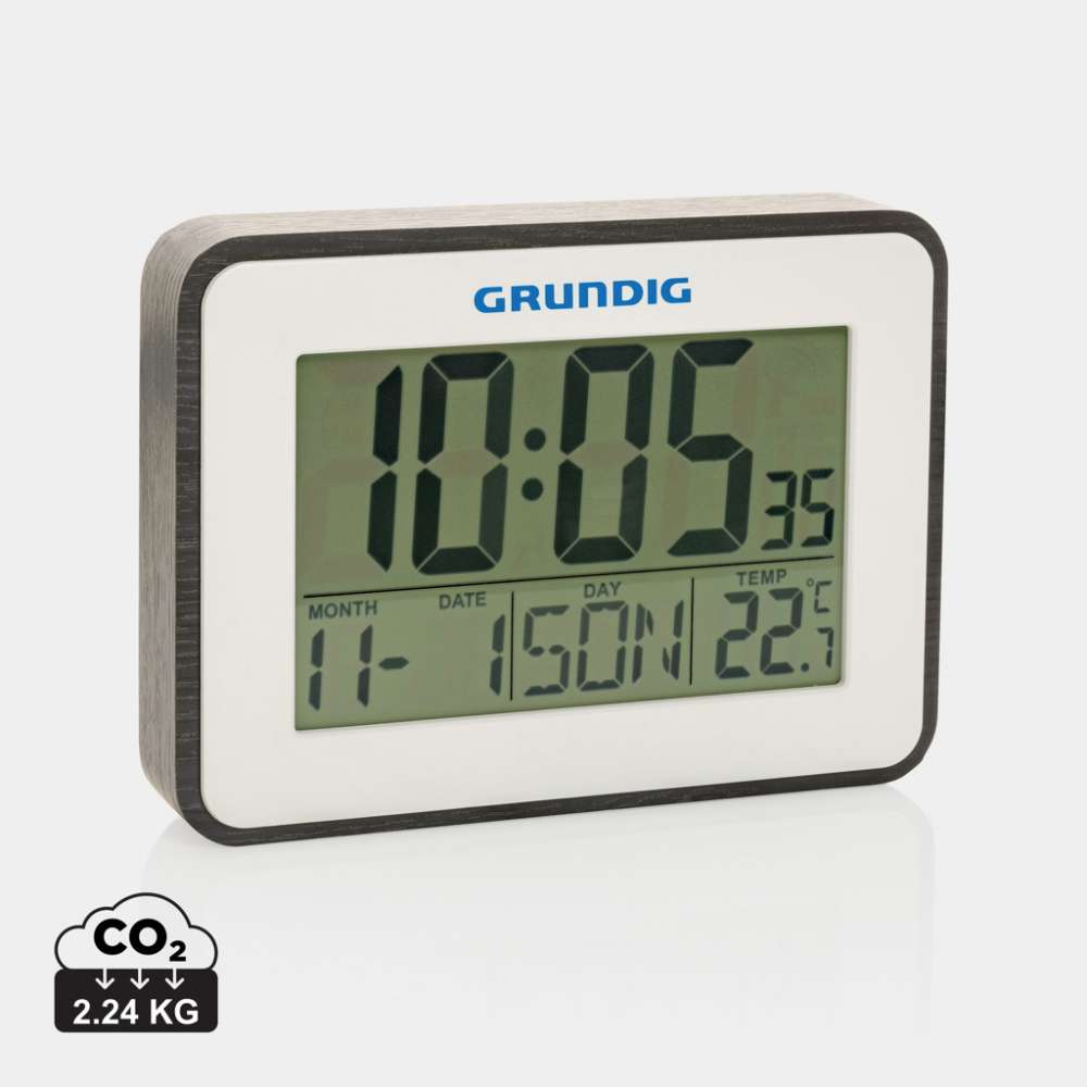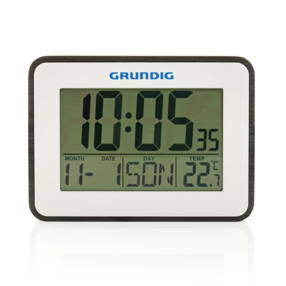 Grundig inomhus väderstation med alarm och kalender. Funktioner är termometer, alarm, dag, månad, datum och tid. Exkl. 2x AA batterier. Levereras i Grundig giftbox.