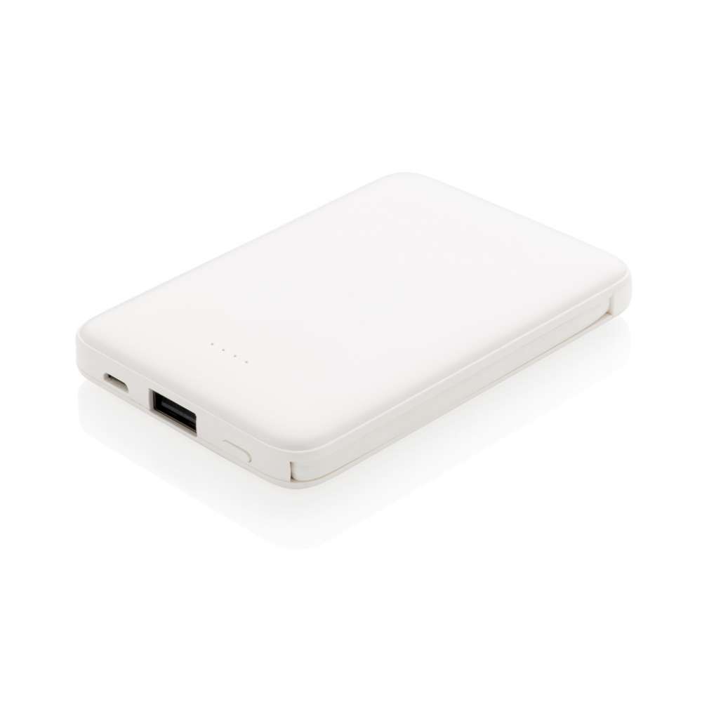 Kompakt och platt 5.000 mAh powerbank tillverkad i ABS. Den 3-i-1 integrerade TPE-kabeln gör powerbanken kompatibel med alla mobila enheter. Fulladdad går det att ladda din telefon upp till två gånger. Powerbanken har ett långvarigt A-graderat 5.000 mAh högdensitet lithium polymer batteri. Indikatorn visar energinivån så att du alltid vet när det är dags att ladda. Input: 5V/2A Output 5V/2A.