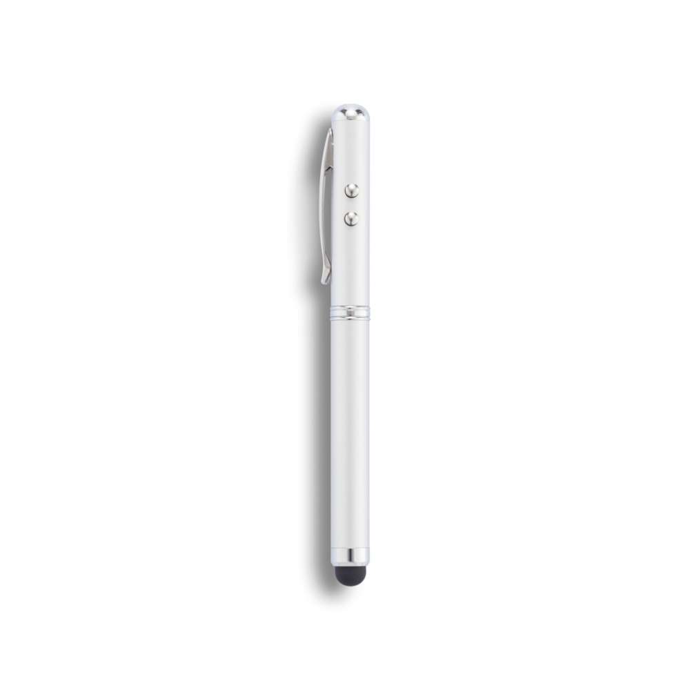 Stilren penna tillverkad av mässing, både laserpekare, lampa, touch samt rollerball.