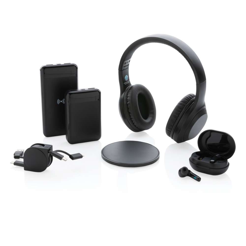 TWS öronsnäckor där öronsnäckorna och laddningsfodralet är tillverkade av RCS certifierad återvunnen ABS. RCS (Recycled Claim Standard) är en standard för att verifiera återvunnet innehåll i en produkt genom hela leveranskedjan. RCS är den standard som används när en del av en produkt är tillverkad av återvunna material. Med BT 5.0 för smidig anslutning och lång speltid. De inbyggda 40 mAh batterierna ger en speltid på upp till 4 timmar och uppladdning i laddningsfodralet sker på bara 1,5 timme. Räckvidd upp till 10 meter. Med mikrofon och touch svarsfunktion. Produkt och accessoarer är 100% PVC-fria. PVC-fri laddningskabel i återvunnen TPE medföljer.