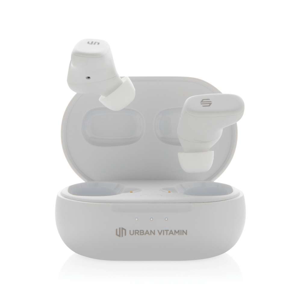 Det bästa ljudet startar med den bästa tystnaden. Denna produkt lever upp till det genom att leverera ett djupt och klart ljud. Öronsnäckorna har Active noice cancelling (ANC) för att blockera ljud från omgivningen när du lyssnar på musik, podcasts eller filmer. Tack vare brusreducering/environment noise cancelling (ENC) är dina samtal klara och tydliga eftersom störande ljud filtreras bort. Öronsnäckorna har touch control function så du behöver bara trycka på öronsnäckan för att svara. IPX5 graderingen gör öronsnäckorna väder, svett och skvättsäkra så inga problem att använda dem utomhus. De bekväma öronsnäckorna har upp till 5 timmars lyssningstid och laddningsfodralet ger upp till 20 timmars uppspelning. Om du behöver ladda fodralet anslut type C kabeln eller placera det på en trådlös laddare. Urban Vitamin produkter är PVC-fria och levereras i en plastreducerad förpackning.