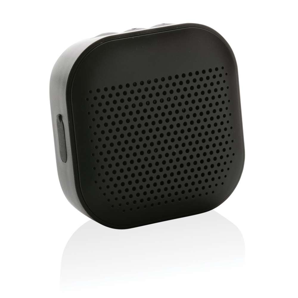 3W trådlös högtalare tillverkad av RCS-certifierad återvunnen ABS (Recycled Claim Standard). Totalt återvunnet innehåll: 41% baserat på de total produktvikt. RCS-certifiering garanterar en helt certifierad leveranskedja för de återvunna materialen. Högtalaren är utrustad med ett 400mAh-batteri som garanterar upp till 3,5 timmars speltid. Med BT5.3 för smidig anslutning och klart ljud. Räckvidd upp till 10 meter. Med mikrofon för att svara på samtal. Levereras i en FSC®-mixförpackning. Laddningskabel i RCS-certifierad återvunnen TPE medföljer. Produkten och tillbehören är 100% PVC-fria. IPX 4 vattentät.