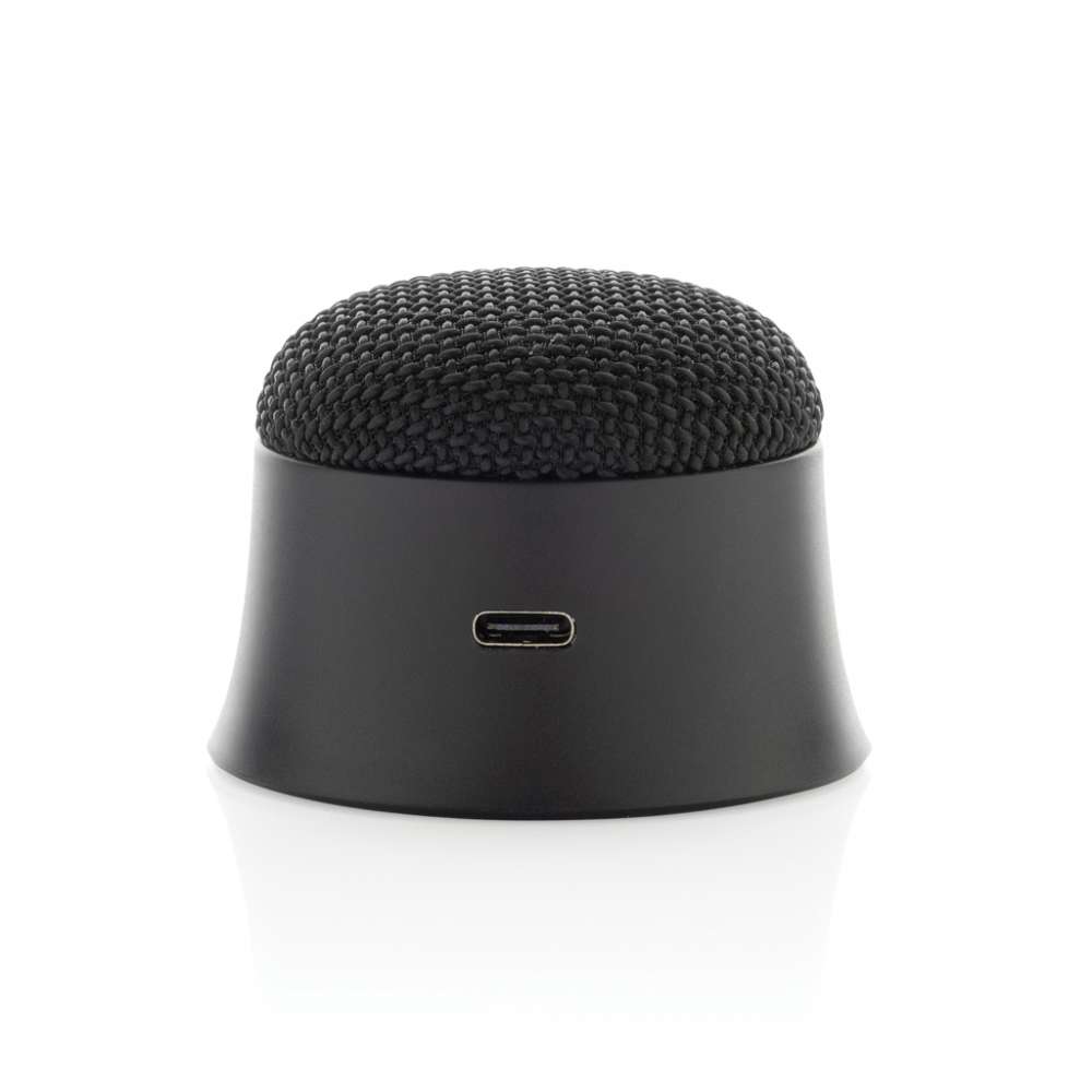 Magnetisk 5W trådlös högtalare som enkelt kan fästas på baksidan av en mobil enhet som stöder magnetisk montering. Klicka enkelt på den och du kan börja använda högtalaren som ett mobilt stativ medan du spelar din favoritmusik. Högtalaren kan också enkelt fästas på andra magnetiska ytor, t.ex. kylskåp. Högtalaren är tillverkad av RCS-certifierad återvunnen ABS (Recycled Claim Standard). Totalt återvunnet innehåll: 22% baserat på artikelns totala vikt. RCS-certifieringen säkerställer en helt certifierad leveranskedja för de återvunna materialen. Magtune levereras med ett 650 mah A-klassat batteri som ger en speltid på upp till 5 timmar och kan laddas på 2 timmar. Den använder BT 5.0 för smidig anslutning och enkel automatisk parkoppling. Inklusive typ C-laddningskabel tillverkad av RCS-certifierad återvunnen TPE. Förpackad i FSC®-mixad förpackning. PVC-fri.