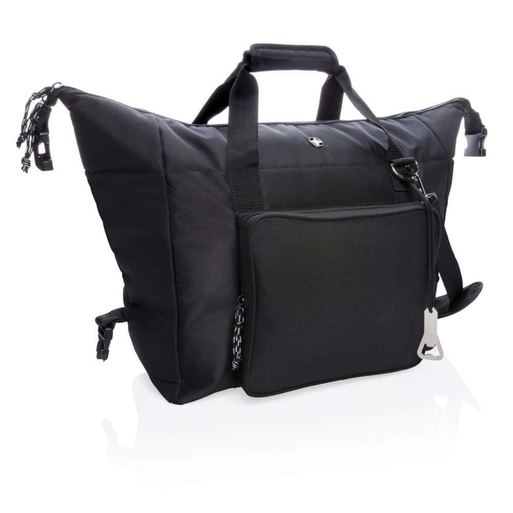Deluxe tote/duffel-kylväska i 1680D och 600D polyester med extra stor dragkedja till huvudfack samt frontficka med dragkedja. Väskan kan lätt omvandlas till en duffel genom att stänga sidobanden. Stort 40 L fack, med plats för 10 st 1,5 L flaskor eller 52 st 33 cl burkar. Dubbelförstärkta bärhandtag. Avtagbar justerbar axelrem. Inklusive öl-öppnare. PEVA isolering.