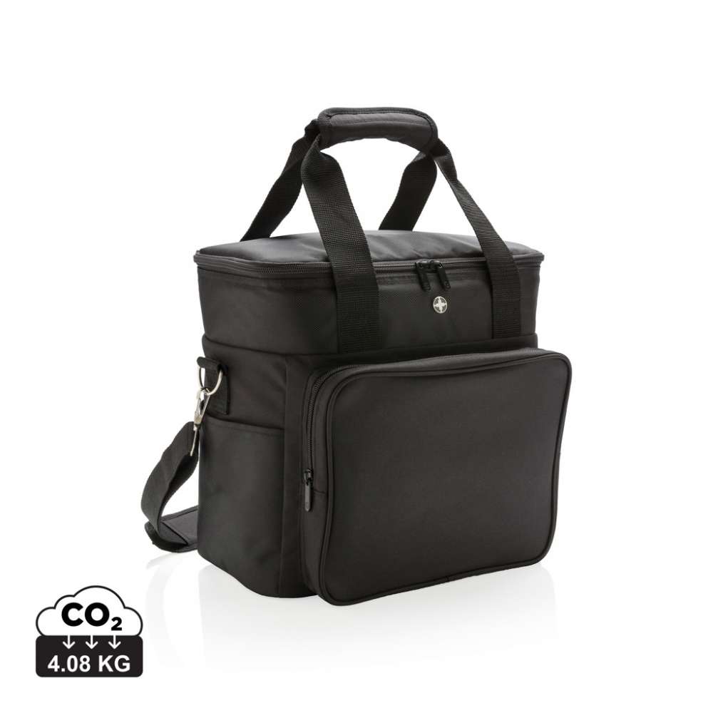 Lyxig kylväska i 1680D och 600D polyester med extra stort huvudfack med dragkedja samt fack på fronten. Med plats för upp till 20 burkar. Dubbelt förstärkta handtag. Avtagbar, justerbar axelrem.