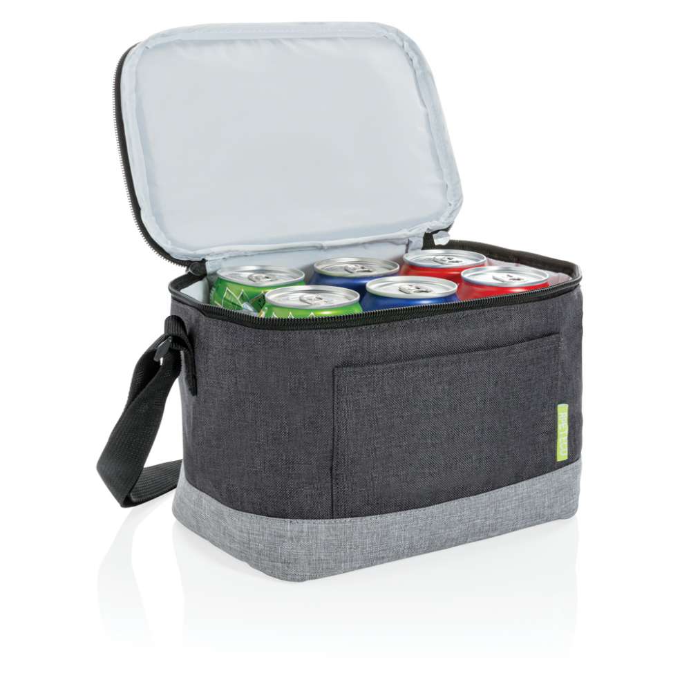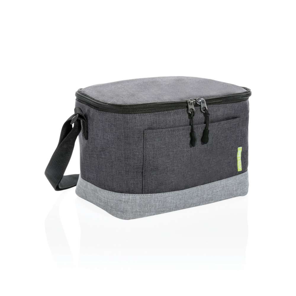 Med kapacitet för 6 burkar finns det gott om plats för förvaring av mat och dryck. Med fack på framsidan och axelrem. Tillverkad av hållbar RPET, utsida: 100% 600D melange RPET / foder: 100% PEVA. Registrerad design®