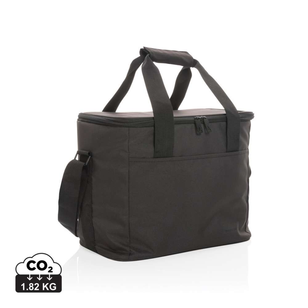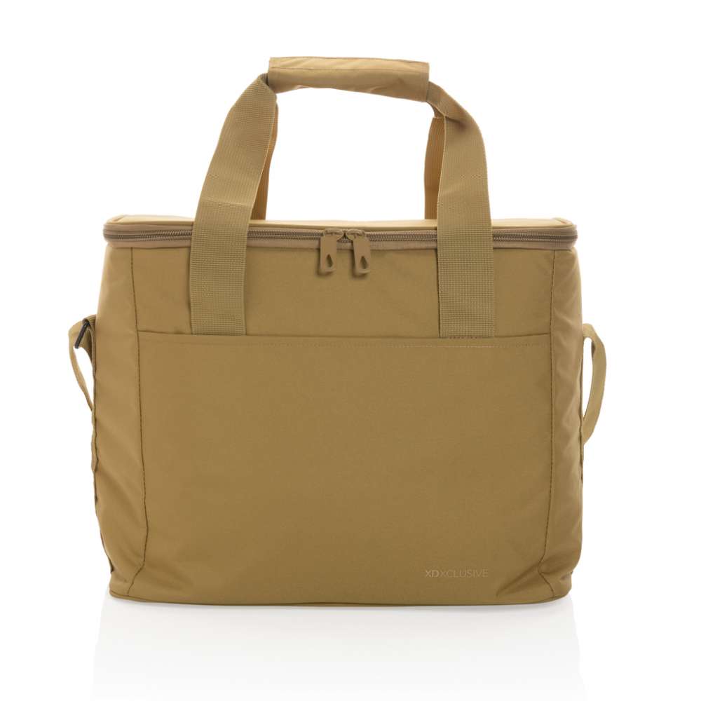 Stor kylväska med plats för upp till 20 burkar. Fack på framsidan för extra förvaring. Detaljerna på kylväskan är i samma färg som utsidan. Med AWARE™ spårämne som bevisar användandet av återvunnet material. 2% av intäkterna för varje såld Impact-produkt kommer att doneras till Water.org. Utsida i 100% återvunnen polyester. Foder i PEVA.