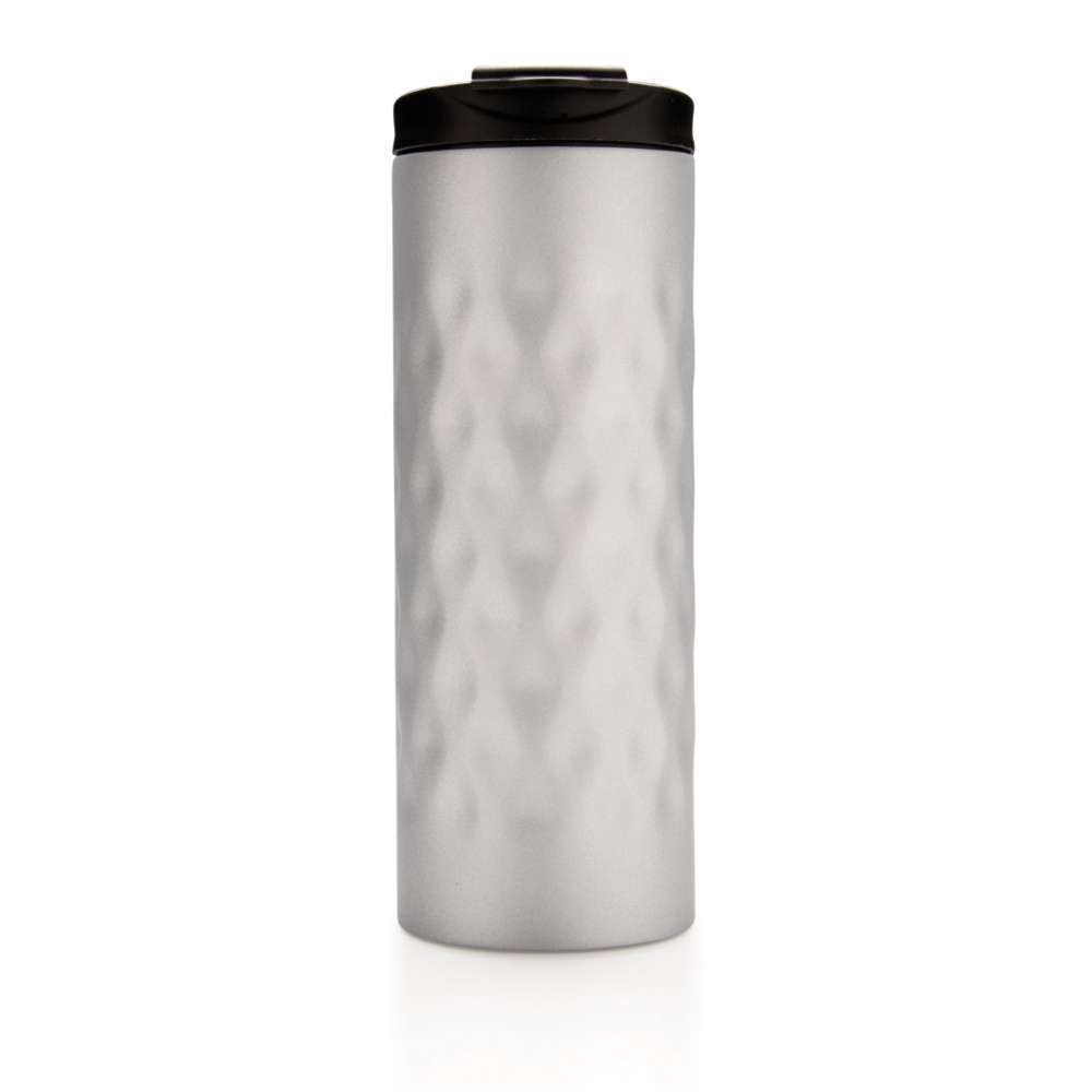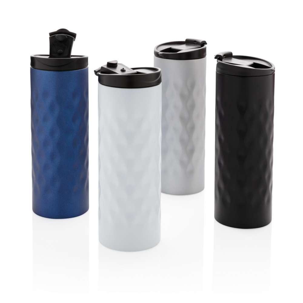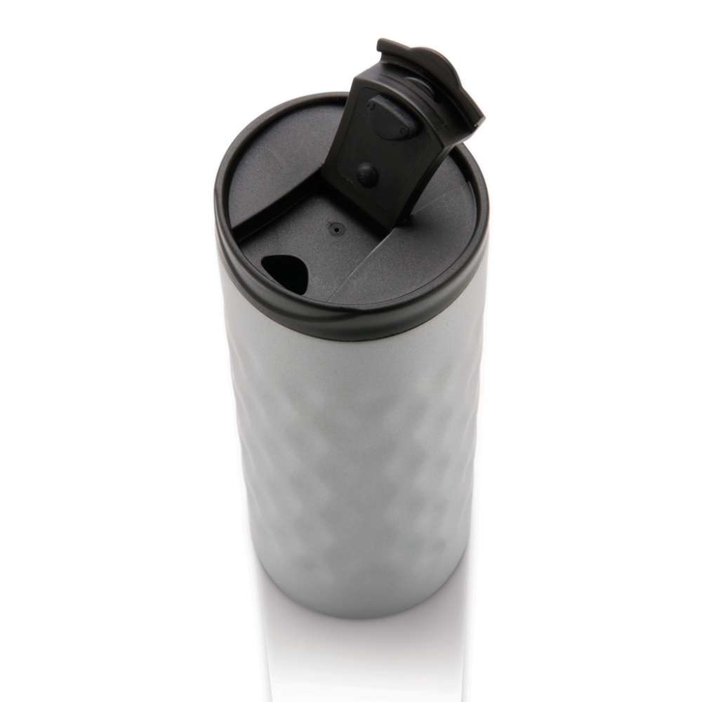 Tät termosmugg i stainless steel med dubbla väggar. Med trendig geometrisk design. Volym: 350 ml.