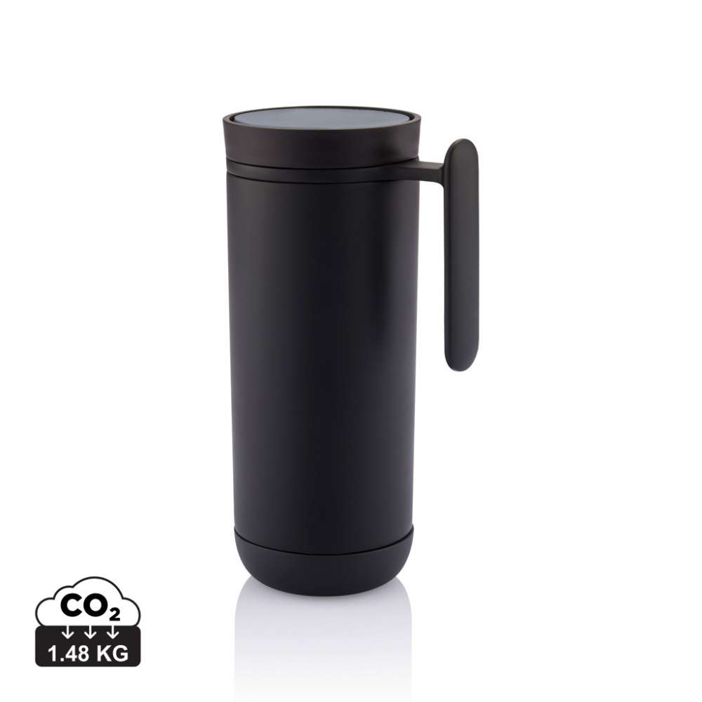 Clik mugg med handtag, har ett smart lock som gör att du kan dricka 360 grader runt muggen, öppnas och stängs med ett enkelt tryck. Den dubbelväggiga, spill och droppfria muggen rymmer 225 ml. Clik är designad så den yttre väggen i rostfritt stål lätt kan tas isär och källsorteras för återvinning, för en renare omvärld. BPA-fri och lämpad för handdisk. Registrerad design®