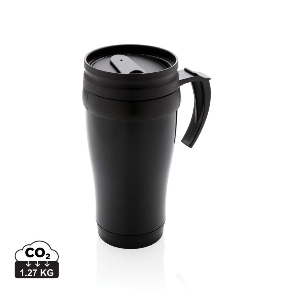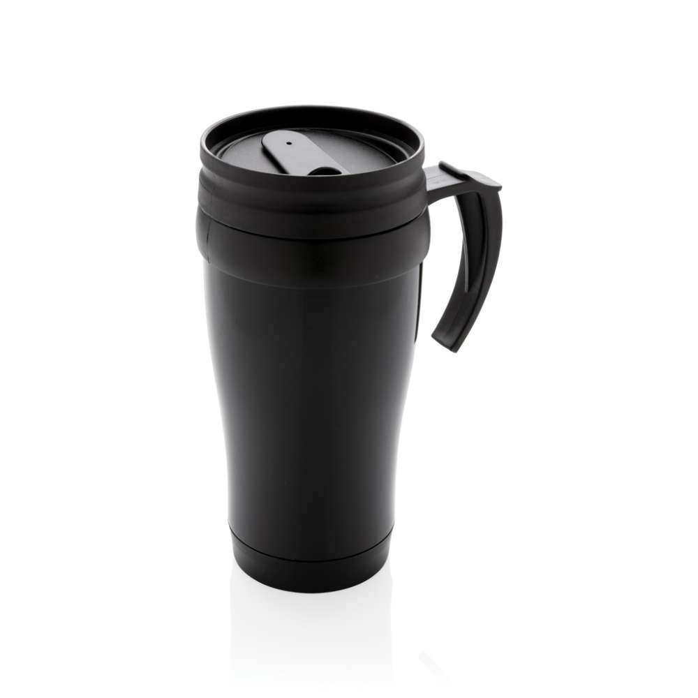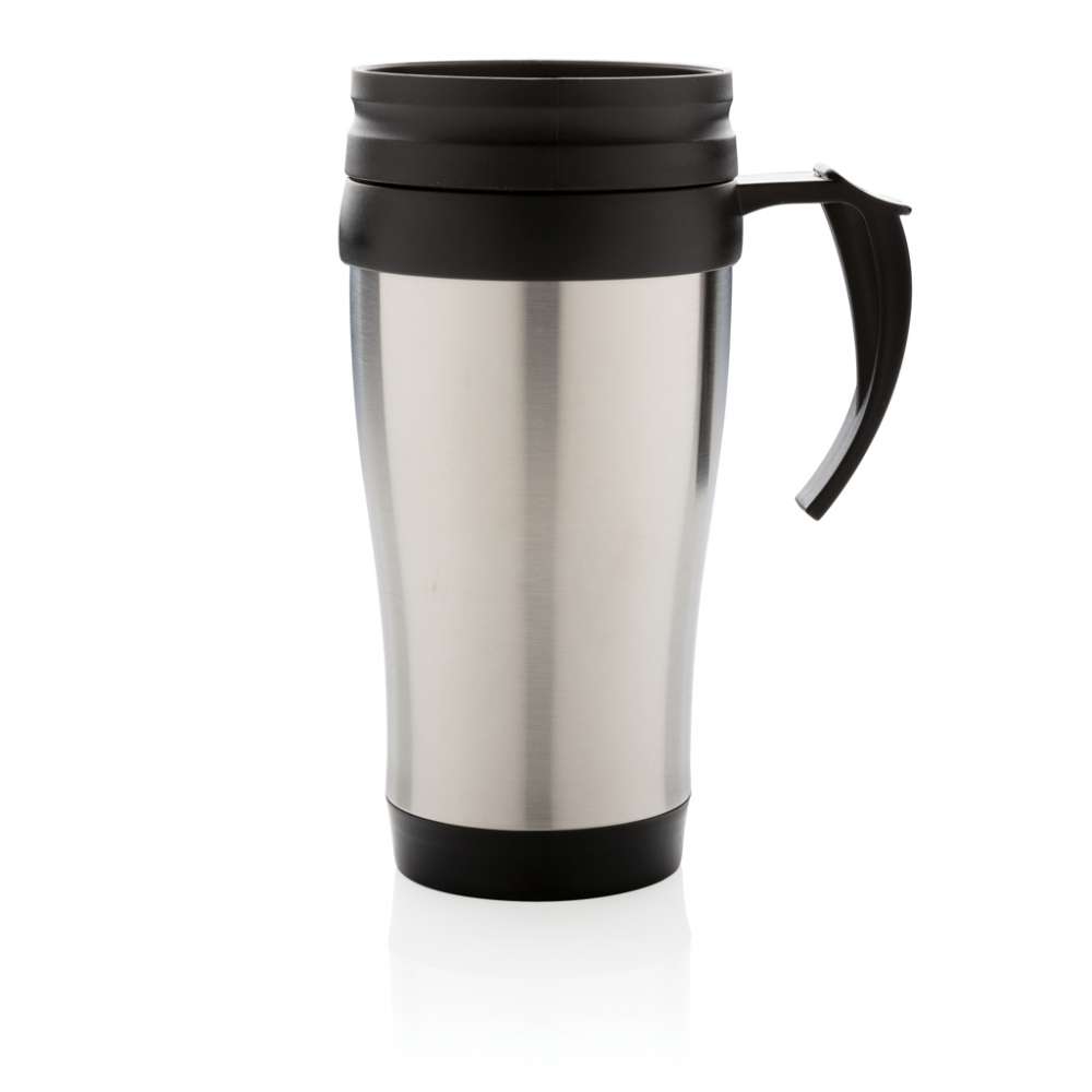 Storsäljande termosmugg i många färger, rymmer 350 ml. Har en utsida av rostfritt stål med insida av PP-plast. Utrustad med spillskydd.