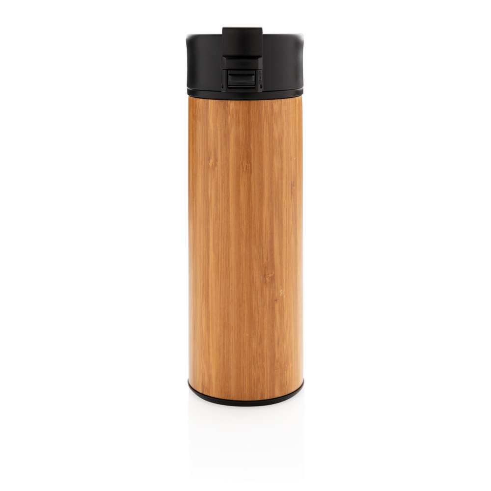 En mugg som passar lika bra för en hike i bergen som på kontoret. Bambun har en tidlös utstrålning och ger ett bekvämt grepp. Lätt att hantera med en hand, låsbart läckagesäkert lock. 304 stainless steel på utsidan och 201 stainless steel på insidan. Håll din dryck varm i upp till 5tim och kyld i upp till 15tim med denna vakuumisolerade mugg. Volym: 450ml. Registrerad design®