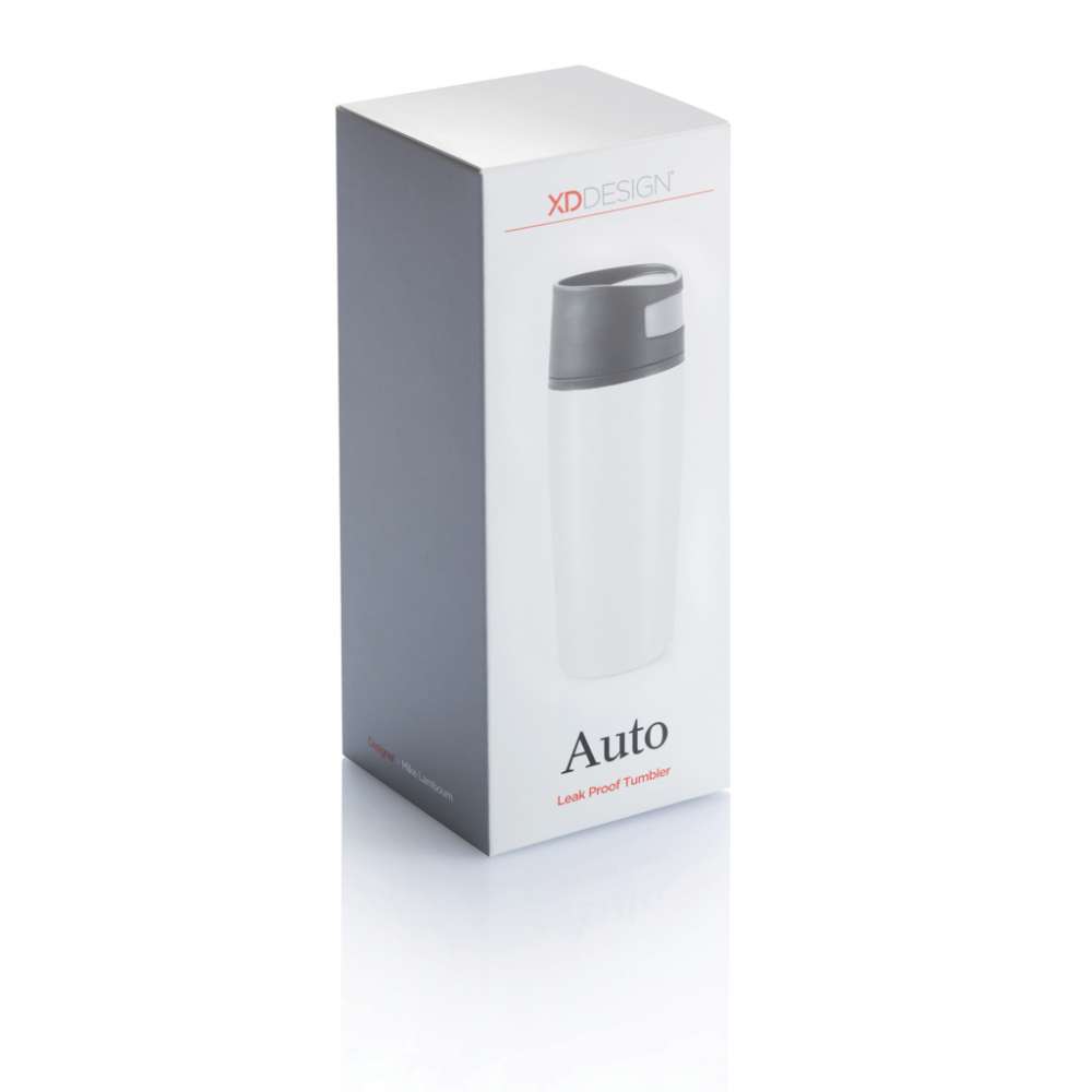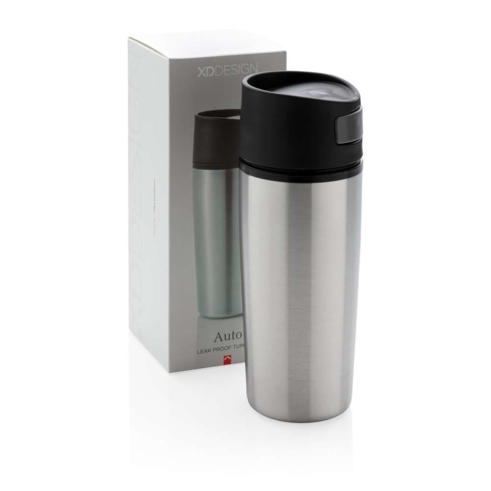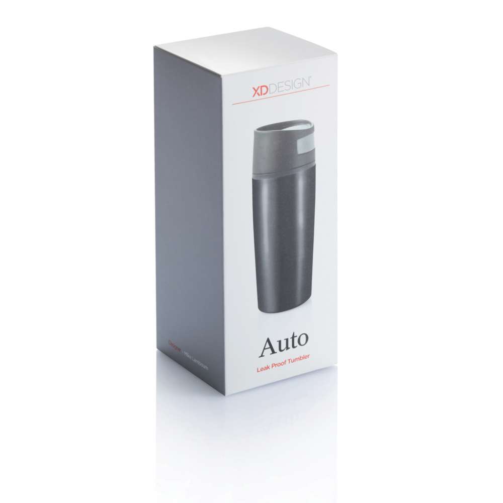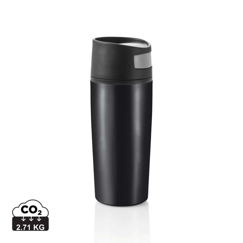 Trendig termosmugg med automatisk öppning/stängning när du håller in knappen. Muggen har en utsida av rostfritt stål och en insida i PP-plast. Rymmer 0,30 L. Registrerad design®