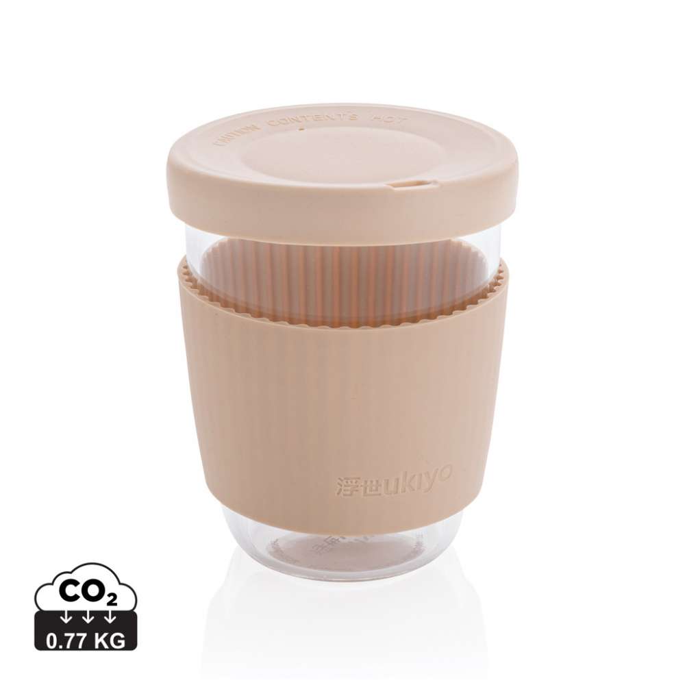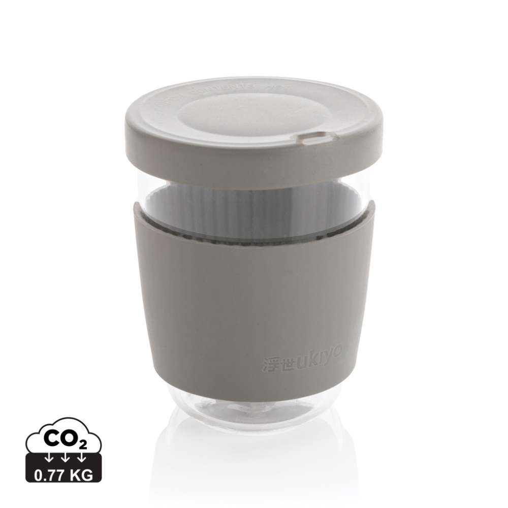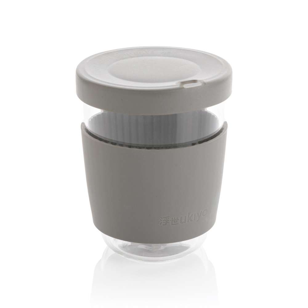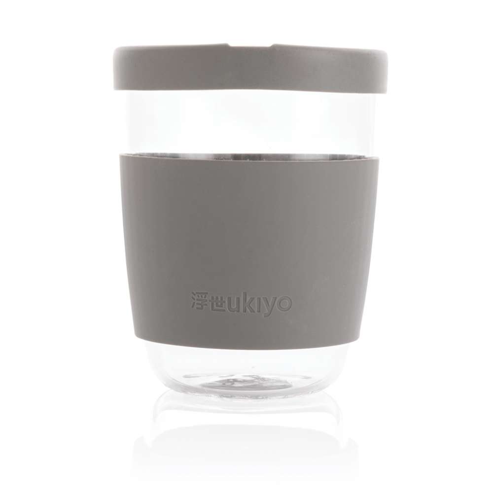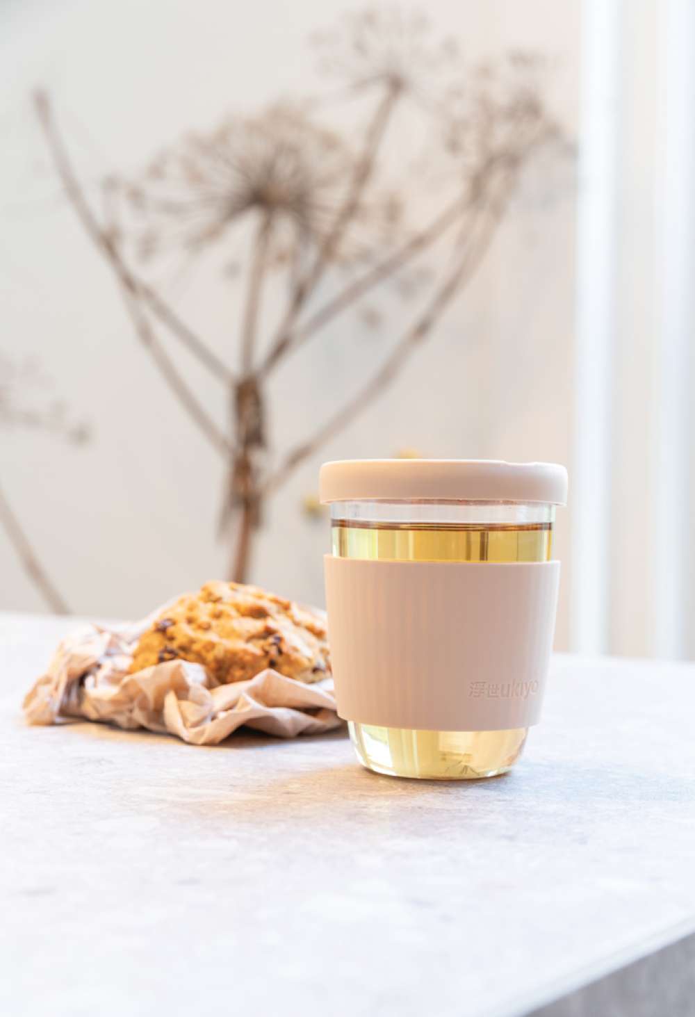 Njut av din kaffe hemma eller på jobbet i Ukiyo borosilikatglas med silikonlock och sleeve. Muggen har ett skönt grepp och en slimmad design. En liten ventil i locket för att släppa ut ångan och förhindra tryckuppbyggnad. BPA-fri. Volym: 360ml.