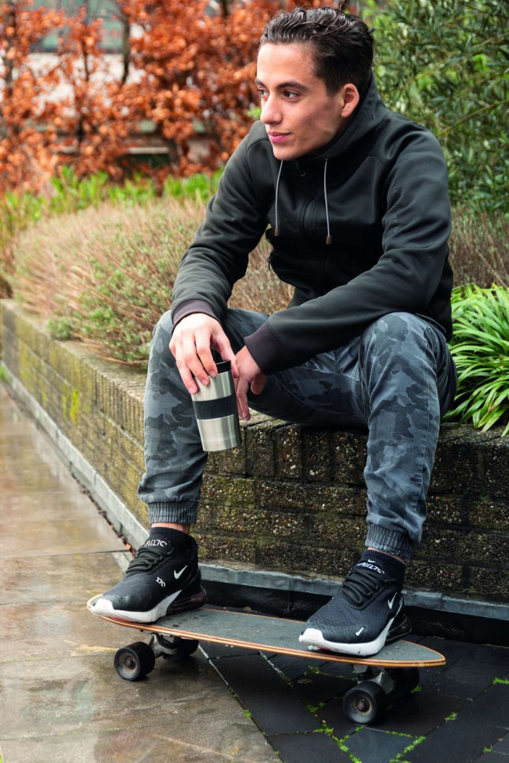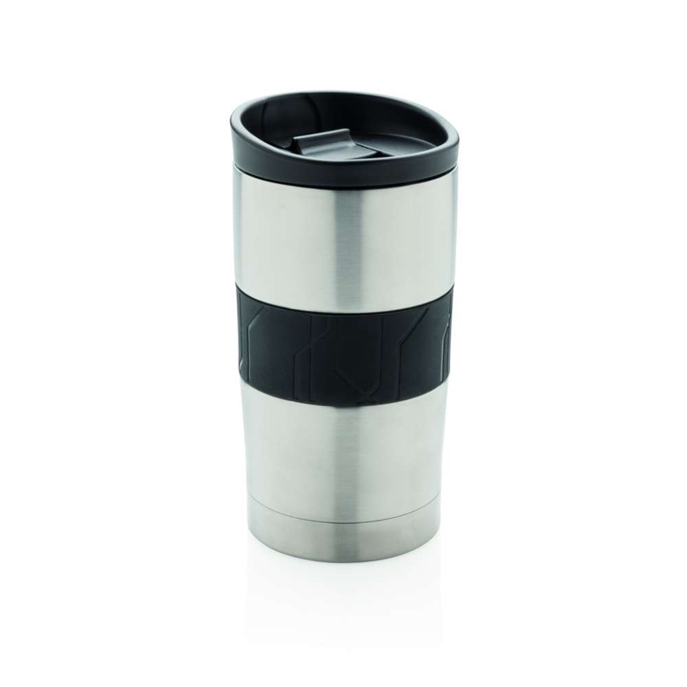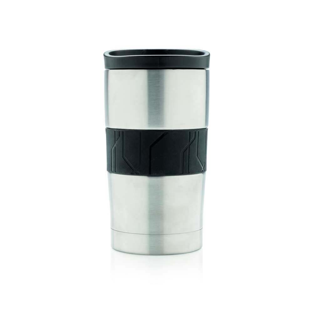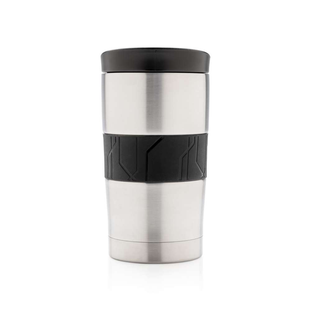 Läckagesäker vakuumisolerad mugg i dubbelväggig 304 stainless steel med silikongrepp och skjutlock. Kan diskas i maskin och passar i de flesta kaffemaskiner. Praktisk enhandsanvändning. Volym: 300ml.