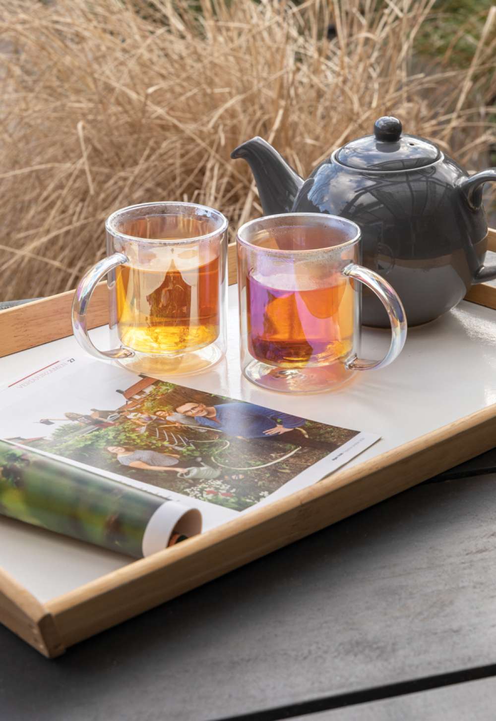 Tillverkad av lättvikt men ändå slitstarkt dubbelväggigt borosilikatglas för både varm och kall dryck. Elektropläterad finish för en extra elegant effekt. Volym: 330ml. Levereras i fullfärgsbox.