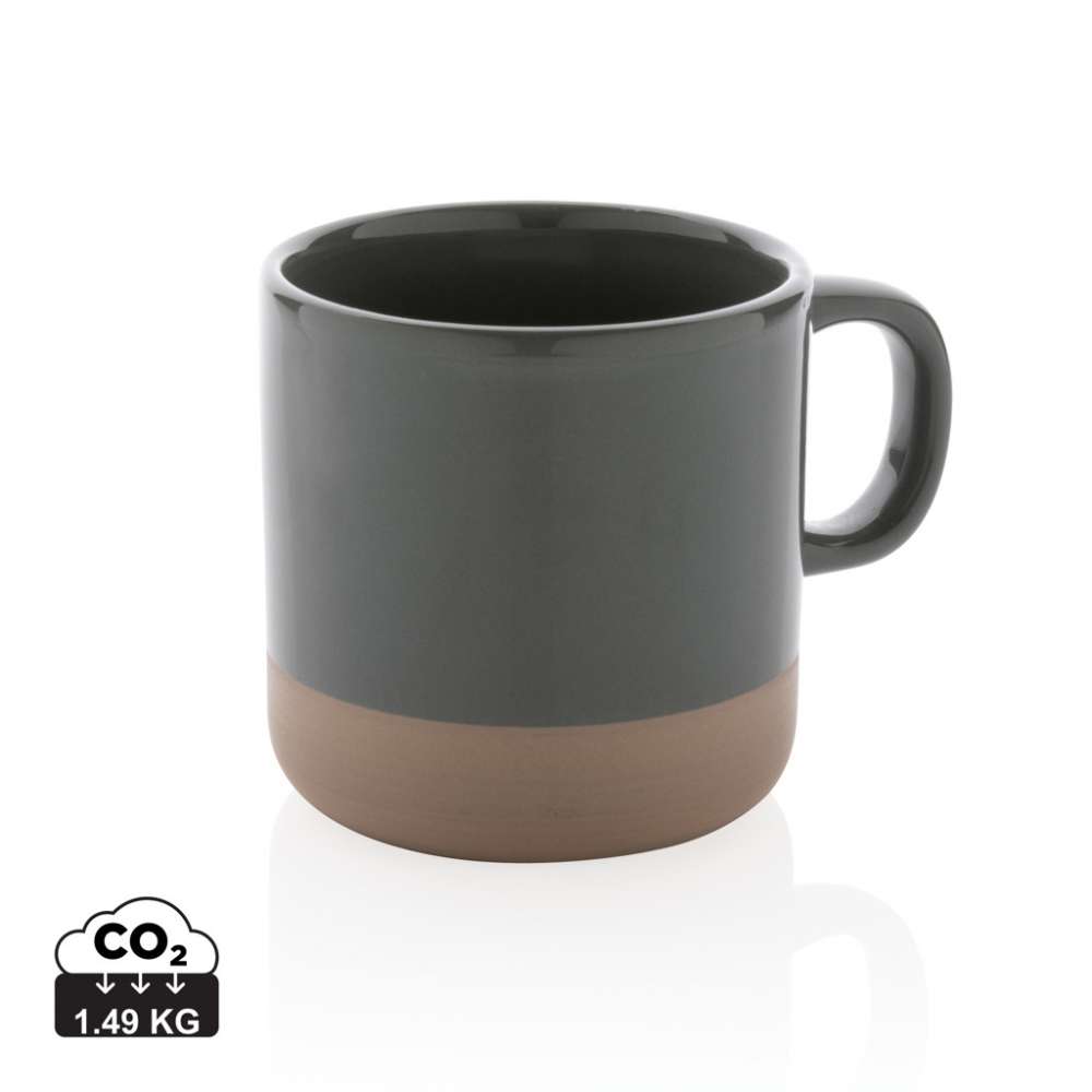 Keramikmugg som är glaserad upptill men har en oglaserad botten. Tack vare de naturliga variationerna i leran är varje mugg unik. Volym 360ml. Levereras i kraft giftbox.