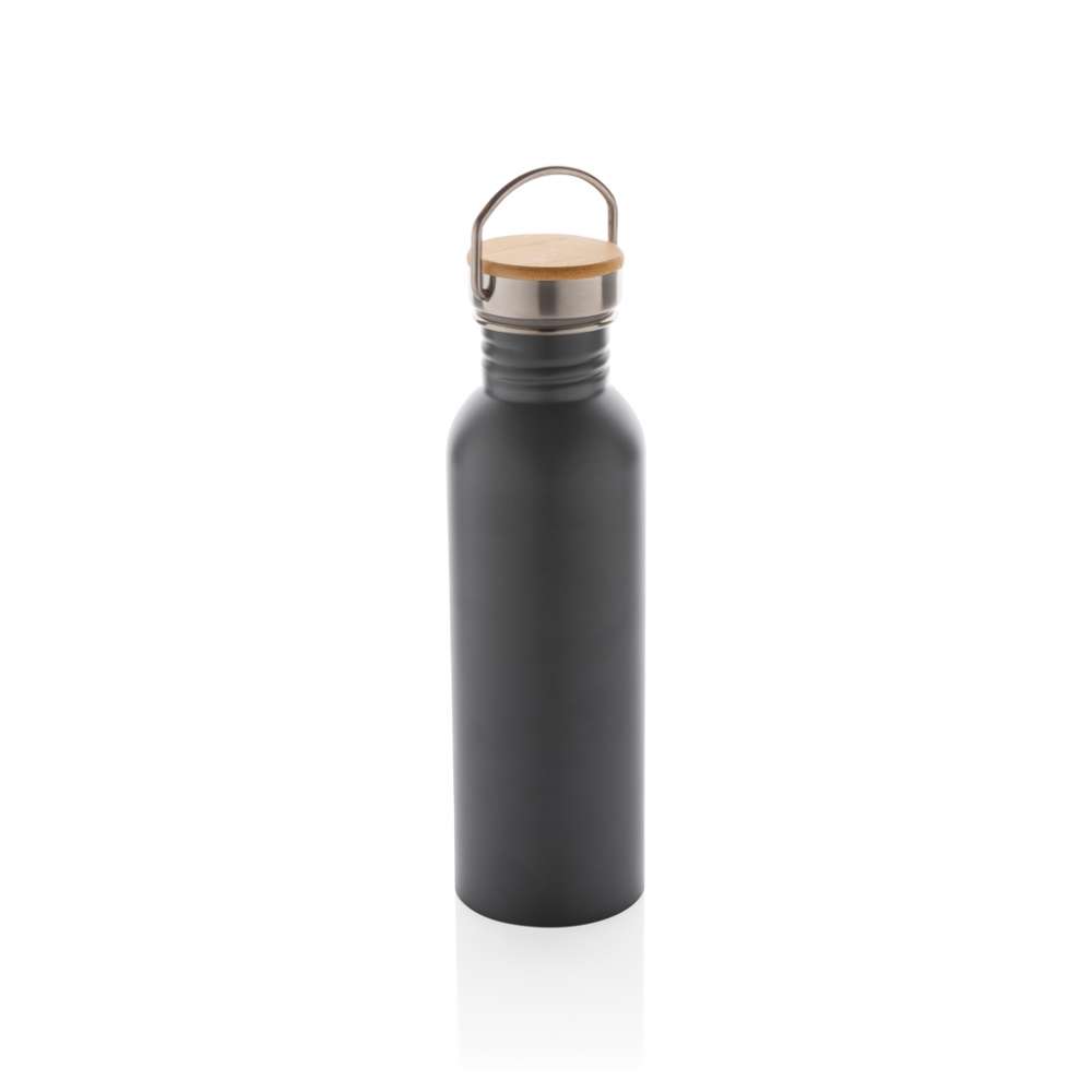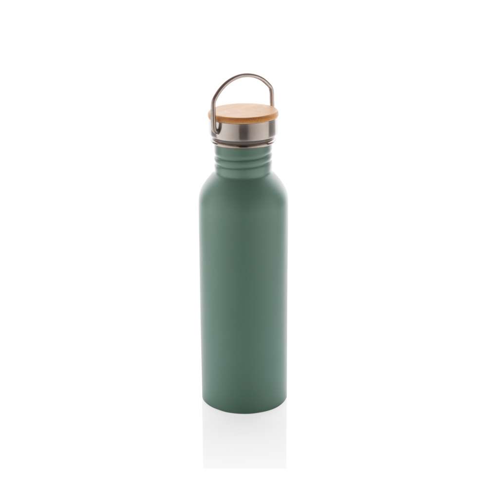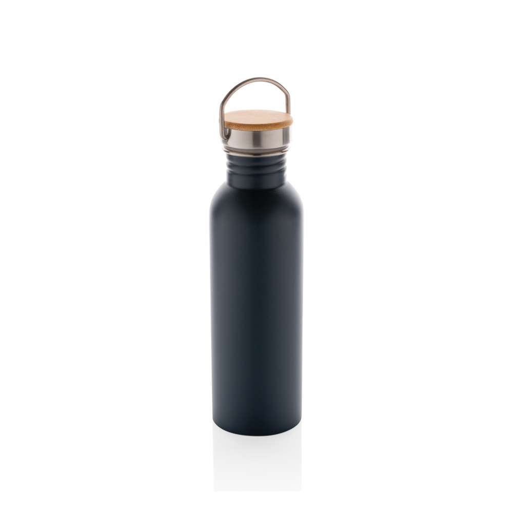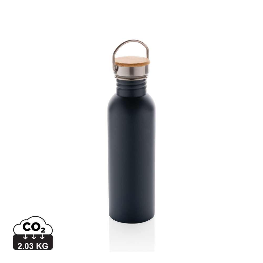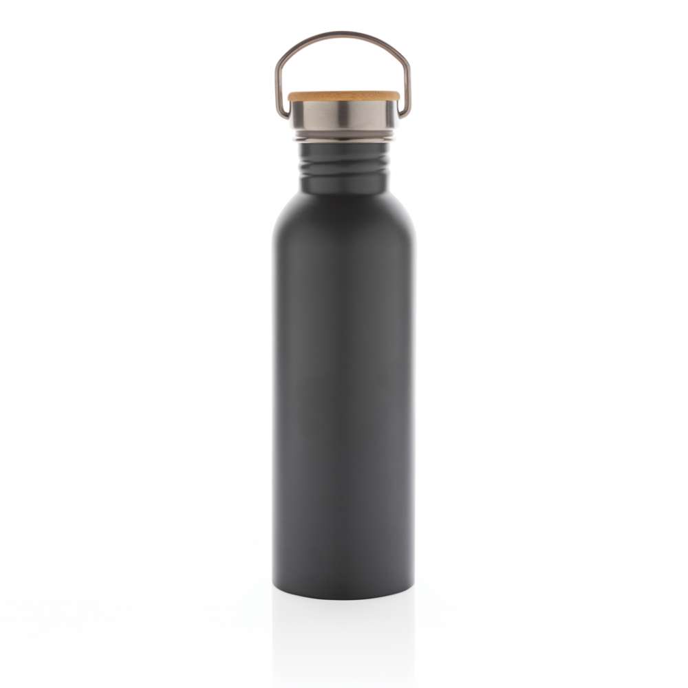 Flaska med stilren design. Modern enkelväggig flaska i stainless steel, även locket är i stainless steel med ovansida i bambu och en bärögla. Volym: 710ml. BPA-fri. Endast handdisk.