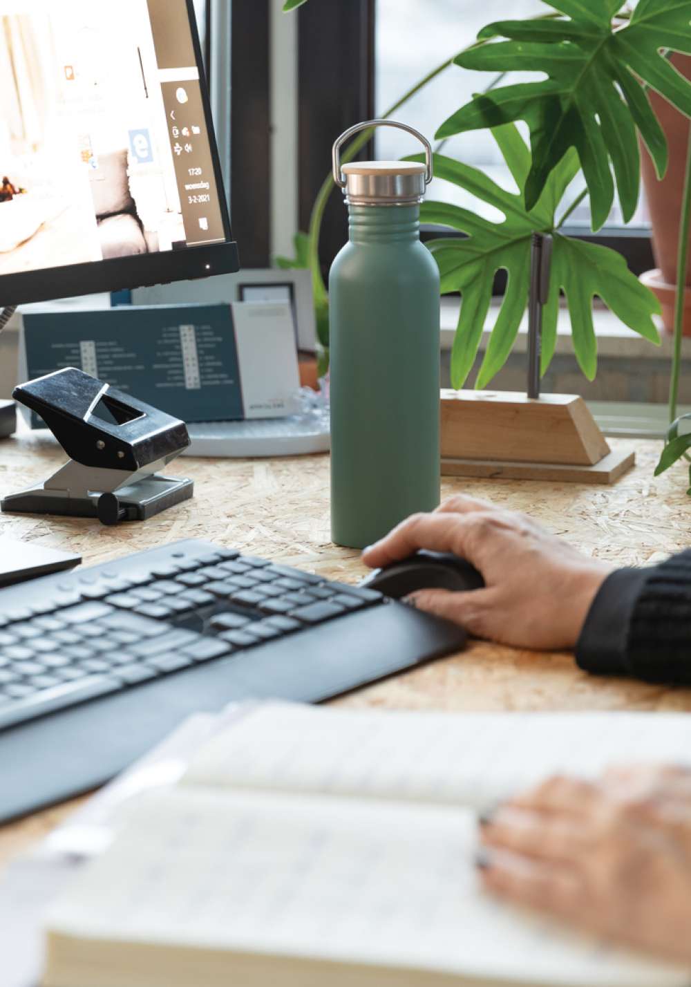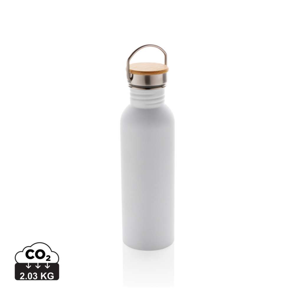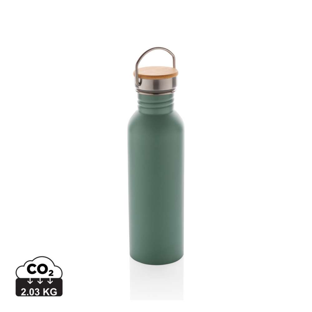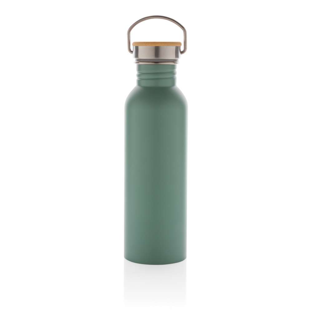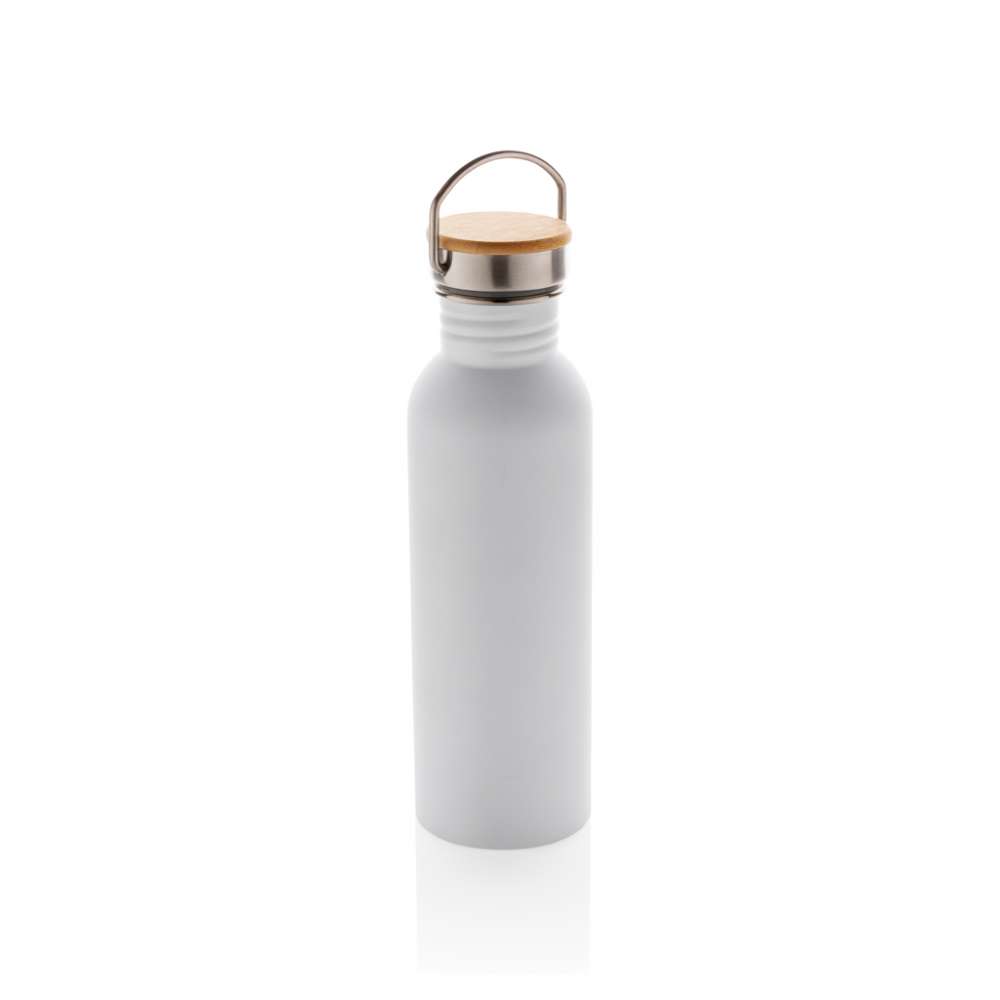Flaska med stilren design. Modern enkelväggig flaska i stainless steel, även locket är i stainless steel med ovansida i bambu och en bärögla. Volym: 710ml. BPA-fri. Endast handdisk.