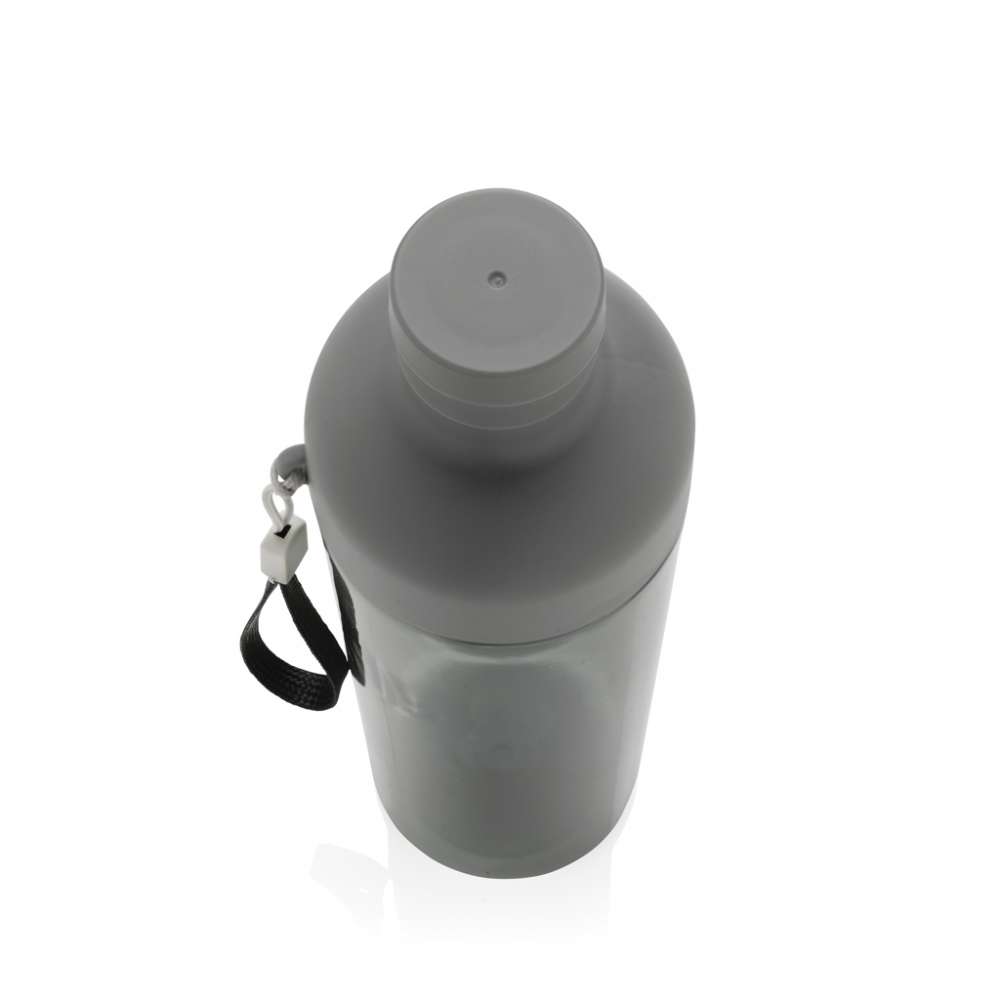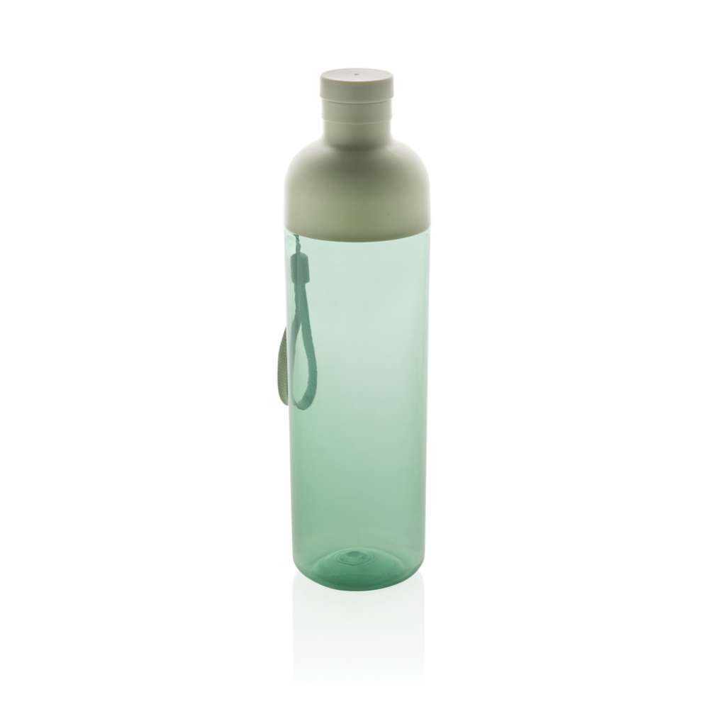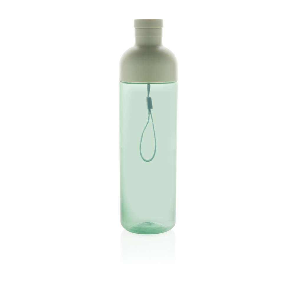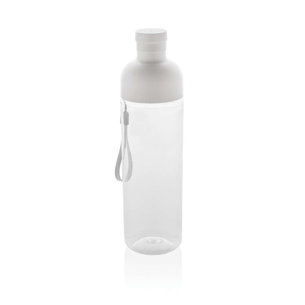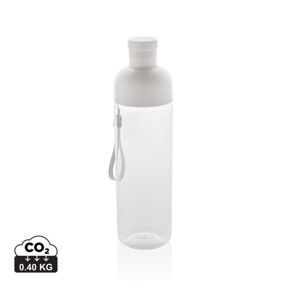 Läckagesäker vattenflaska i återvunnet material. Med sin fräscha design och transparenta kropp är flaskan det perfekta valet istället för engångsflaskor. Den delade designen gör den lätt att rengöra och är perfekt om du vill tillsätta isbitar i flaskan. Bärremmen gör den enkel att bära med sig. 2% av intäkterna från varje såld produkt i Impact Collection kommer att doneras till Water.org. Endast handdisk, flaskan är endast avsedd för kalla drycker. Totalt återvunnet innehåll: 96% baserat på total produktvikt. BPA-fri. Volym: 600ml. Levereras i FSC®-certifierad kraftpresentförpackning.
