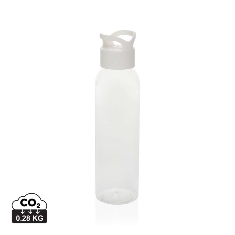 BPA-fri vattenflaska med skruvkork. Flaskans kropp är tillverkad av 100% RCS-certifierad RPET. RCS (Recycled Claim Standard) är en standard för att verifiera det återvunna innehållet i en produkt genom hela leveranskedjan. Endast handdisk, flaskan är endast avsedd för kalla drycker. Totalt återvunnet innehåll: 99% baserat på total produktvikt. BPA-fri. Volym: 650 ml. Flaskan levereras plastfri, bulkförpackad i papper.