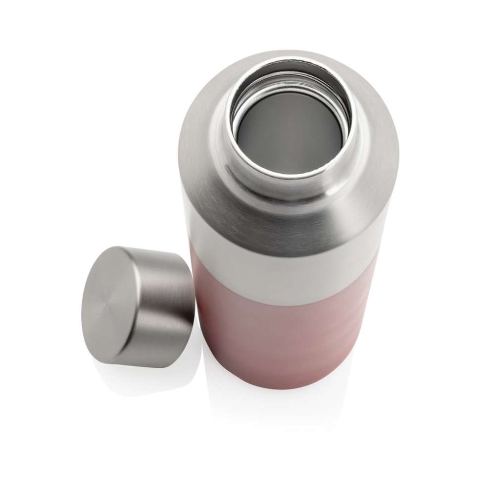 Denna 600 ml vattenflaska har en distinkt dubbelfärgad utsida med en snygg ‘half-and-half’-design. Den dubbelväggiga vakuumkonstruktionen i återvunnet rostfritt stål håller dryckerna kylda i upp till 15 timmar eller varma i upp till 5 timmar. Vattenflaskan passar de flesta vanliga mugghållare i bilar, vilket gör den perfekt för användning i farten. Tillverkad av RCS-certifierade (Recycled Claim Standard) återvunna material, vilket säkerställer en helt certifierad leveranskedja för de återvunna materialen. Fri från BPA. Inklusive FSC®-certifierad presentförpackning i krafttub. Totalt återvunnet innehåll: 95% baserat på varans totala vikt.