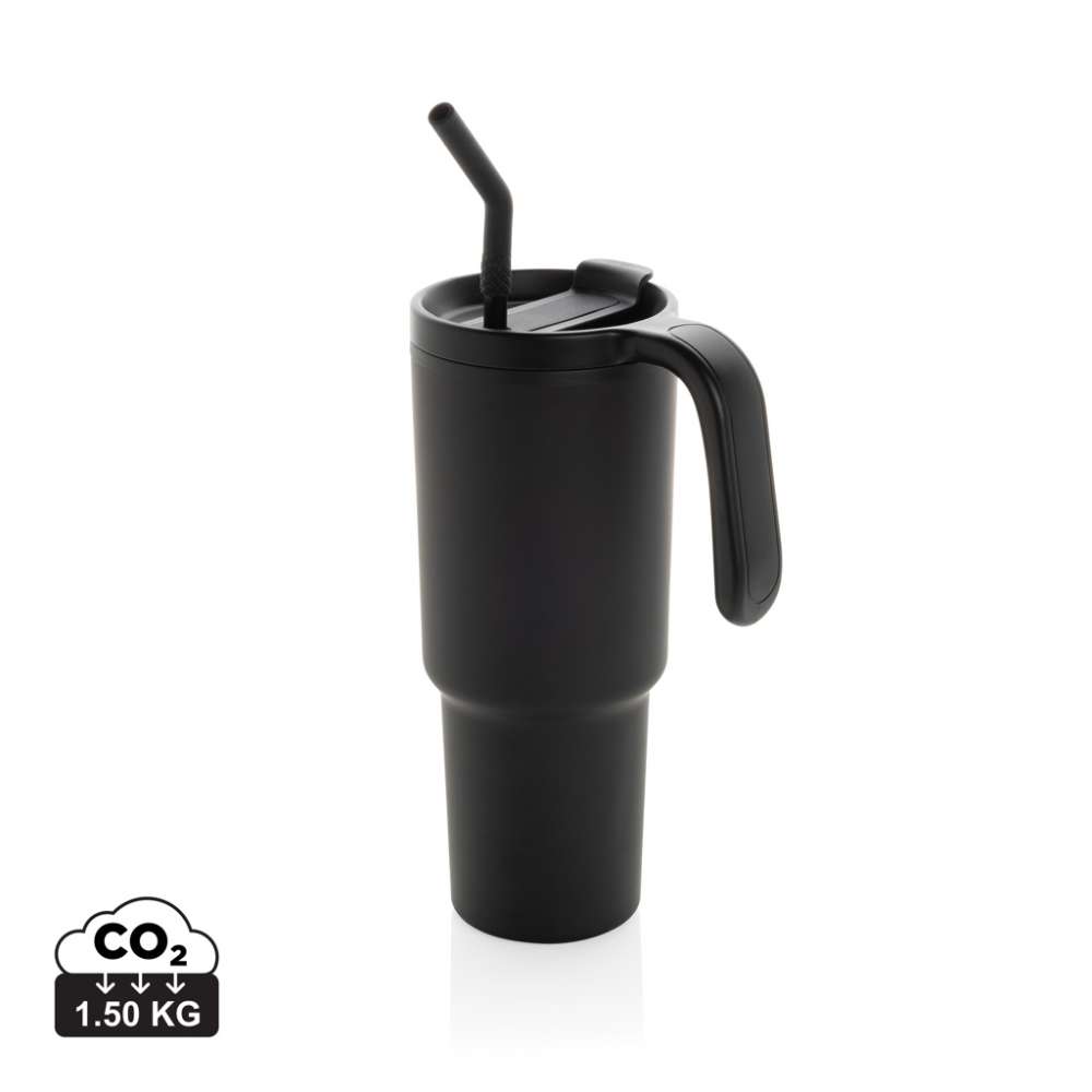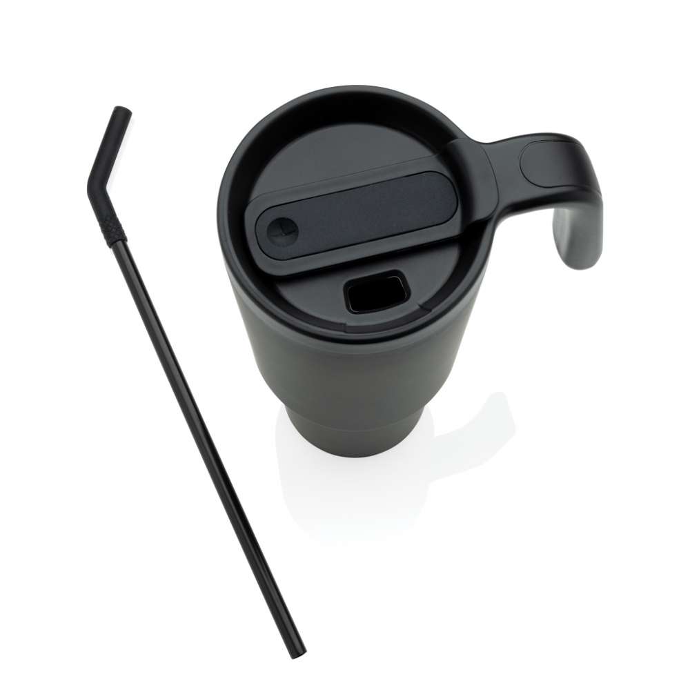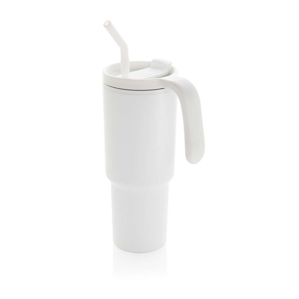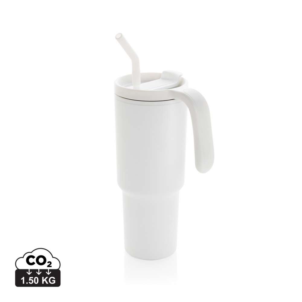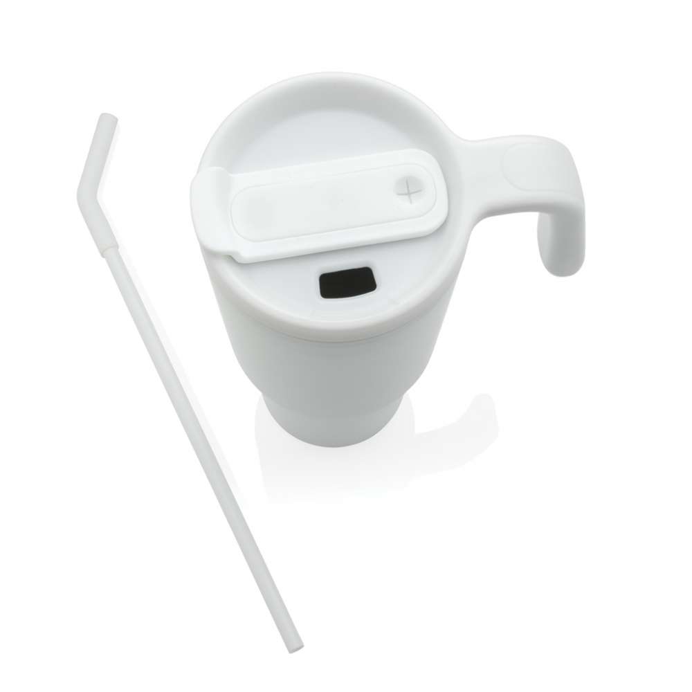 Den mest populära muggen nu lämplig för perfekt 360-digitaltrundtryck. En 900 ml mugg designad för att släcka törsten på ett miljövänligt sätt, tillverkad av återvunnet material. Oavsett om du arbetar, tränar eller reser är den här drickmuggen perfekt. Det innovativa locket har en roterande mekanism med tre lägen: en spillsäker sugrörsöppning, en drickpip och ett helt förseglat lock. Det ergonomiska handtaget med komfortgrepp gör den lätt att bära och den smala basen passar de flesta mugghållare i bilar. Endast handtvätt. BPA-fri. Kapacitet: 900 ml. Inklusive FSC®-certifierad kraft presentförpackning Totalt återvunnet material: 36 % baserat på produktens totala vikt.