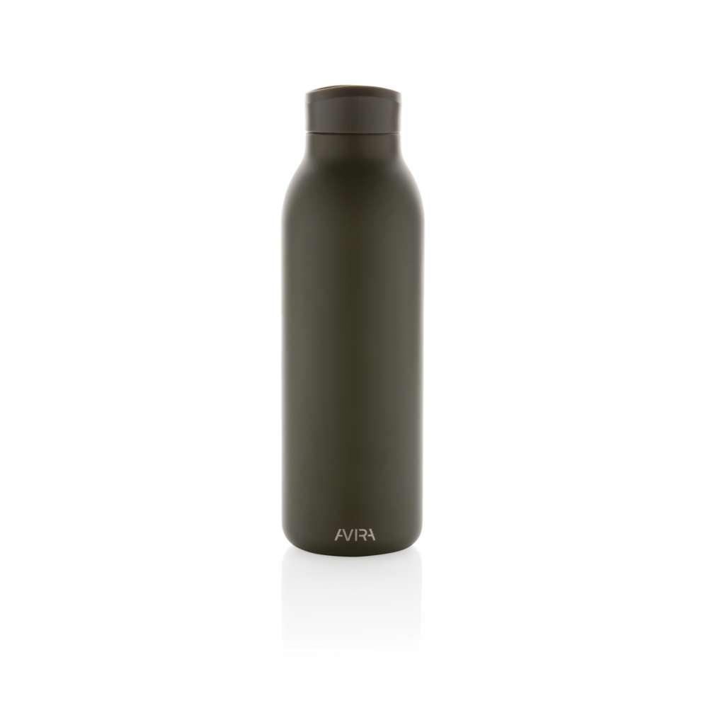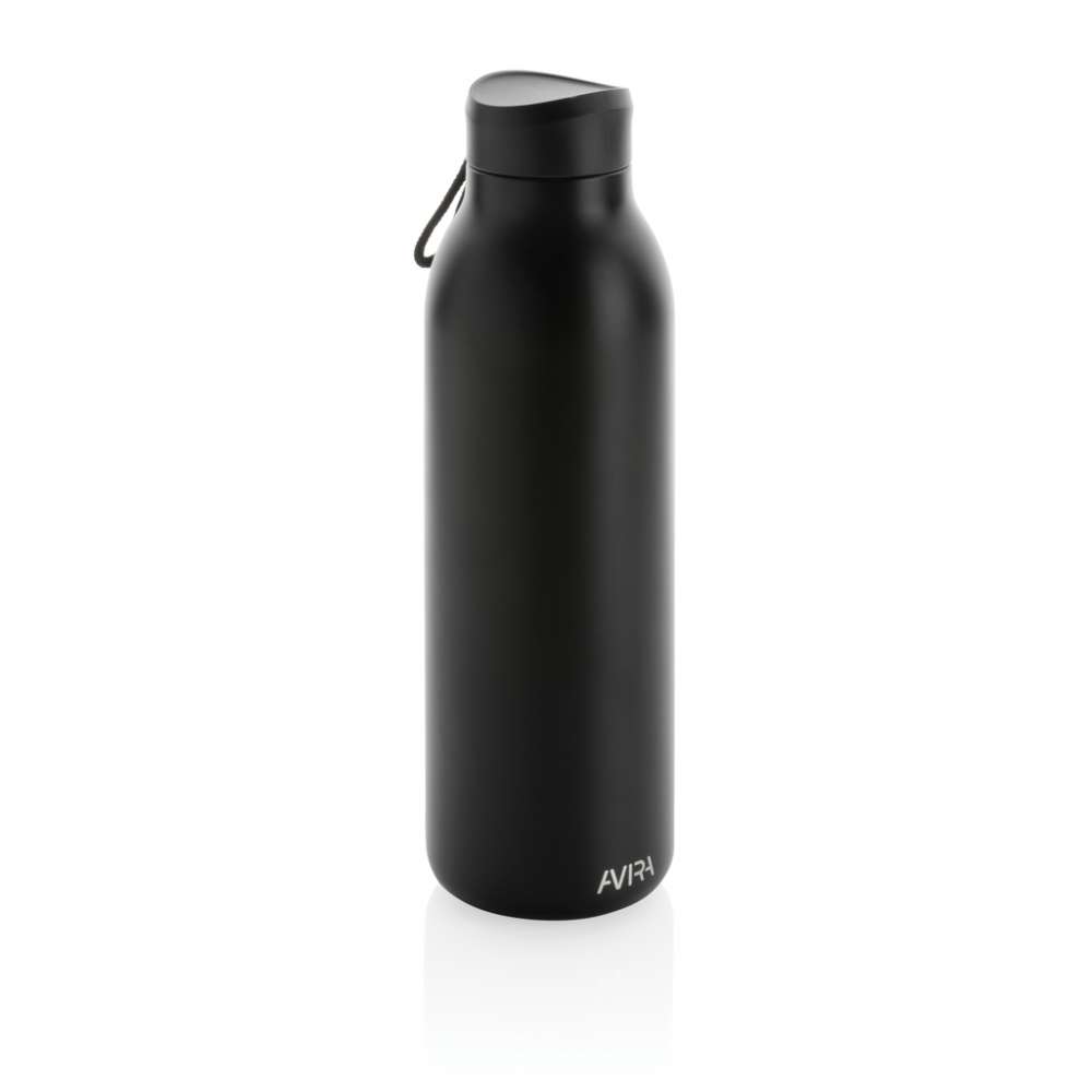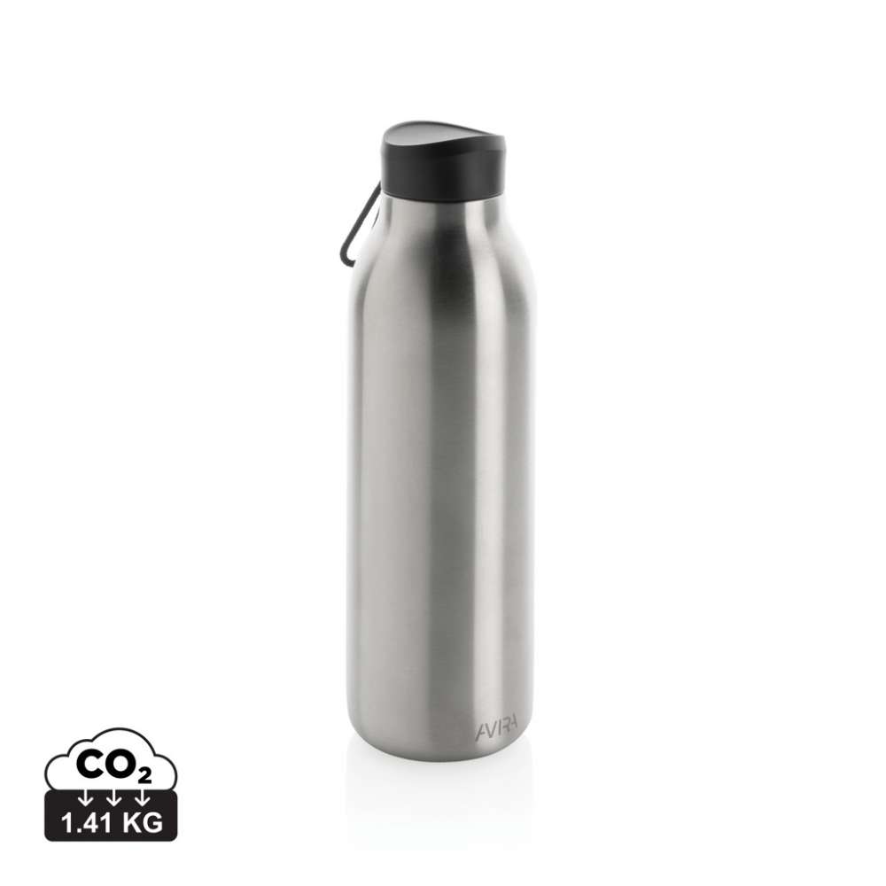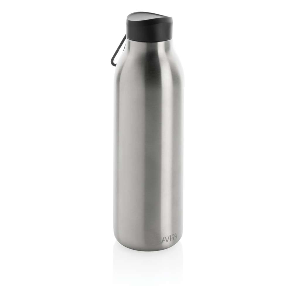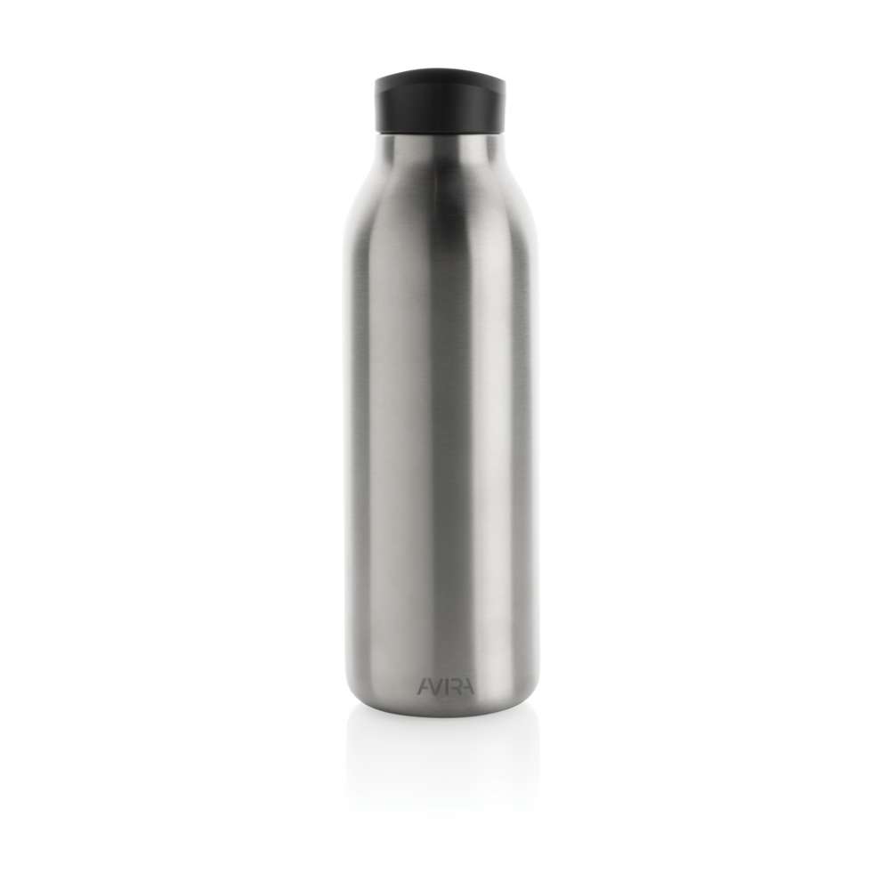 Avior dubbelväggig, vakkumflaska i återvunnen stainless steel håller din dryck kyld i upp till 20 timmar och varm upp till 10 timmar. Flaskans storlek passar nästan alla bilmugghållare. Tillverkad av RCS (Recycled Claim Standard) certifierade återvunna material. RCS certifiering säkerställer en helt certifierad leveranskedja av de återvunna materialen. Totalt återvunnet innehåll: 82% baserat på total produktvikt. BPA-fri. Volym: 500ml. Levereras i FSC®-certifierad kraft förpackning. Kasta inte kartongen, den kan användas som mobilhållare, pennhållare eller varför inte en blomkruka! 2 % av intäkterna från varje såld Impact-produkt doneras till Water.org.