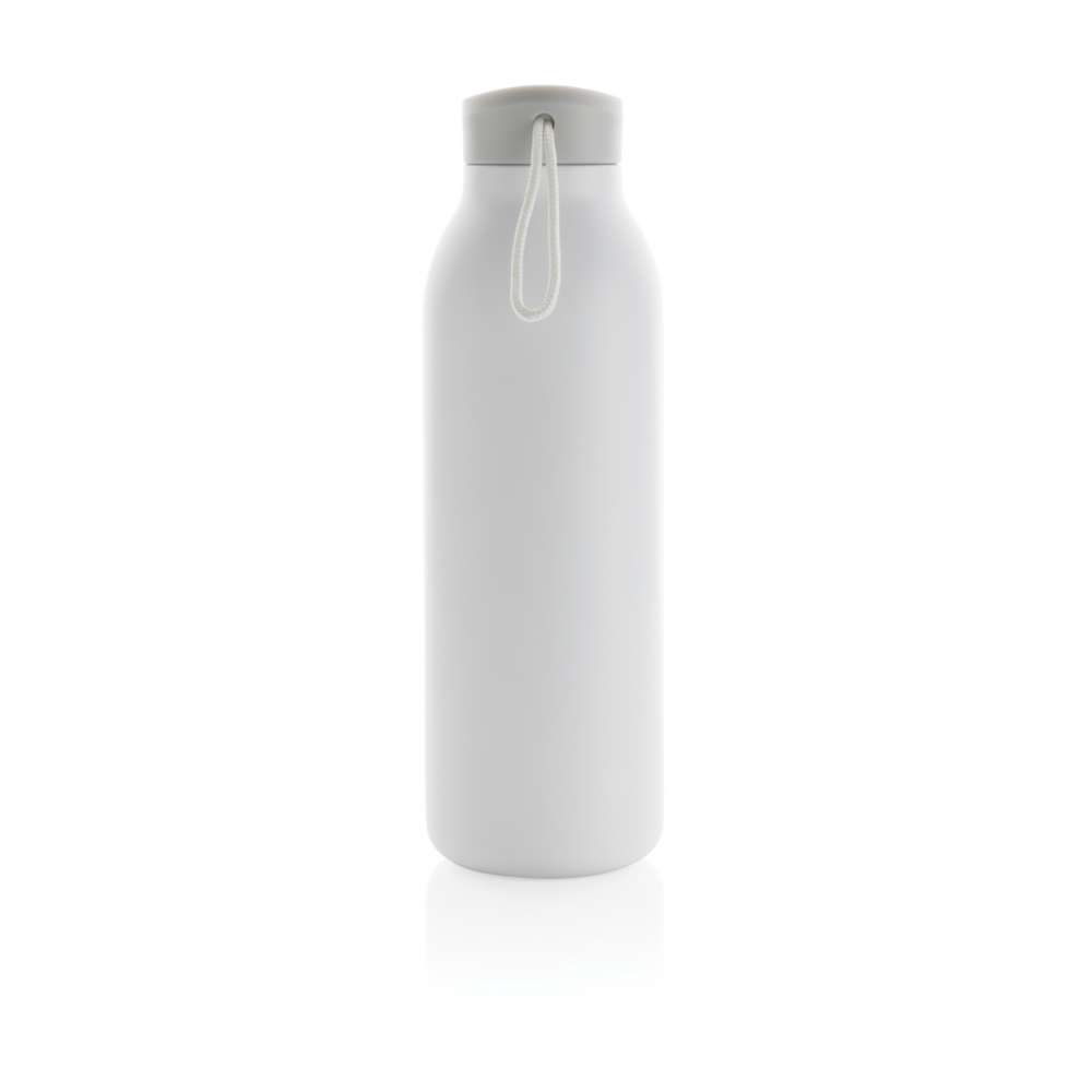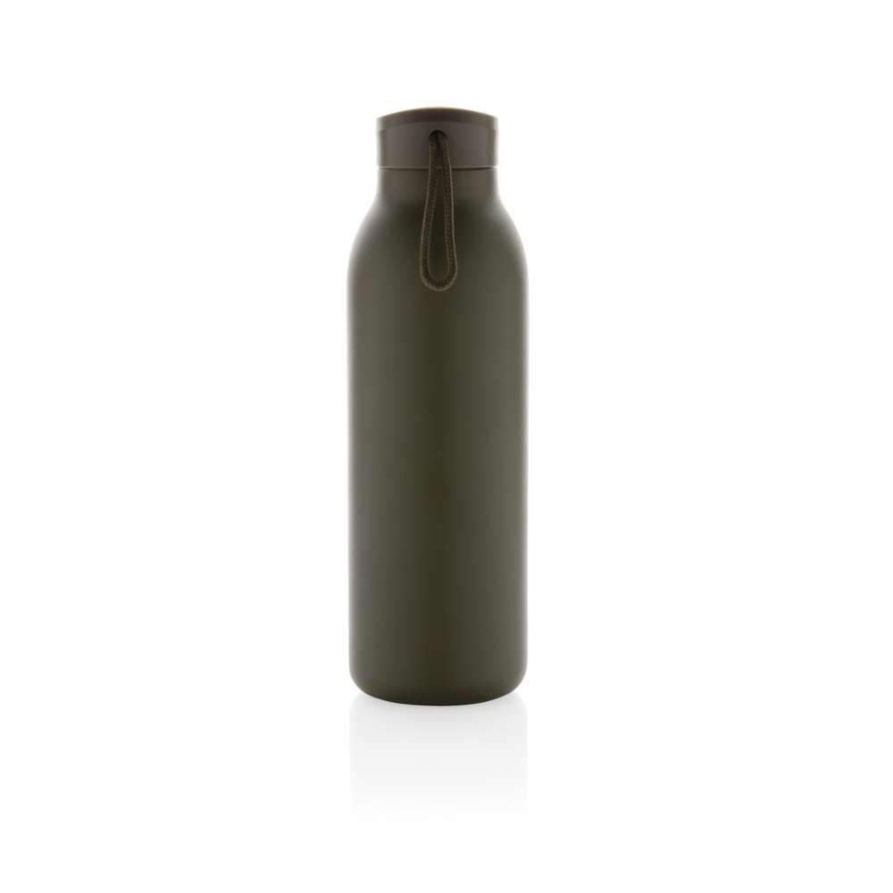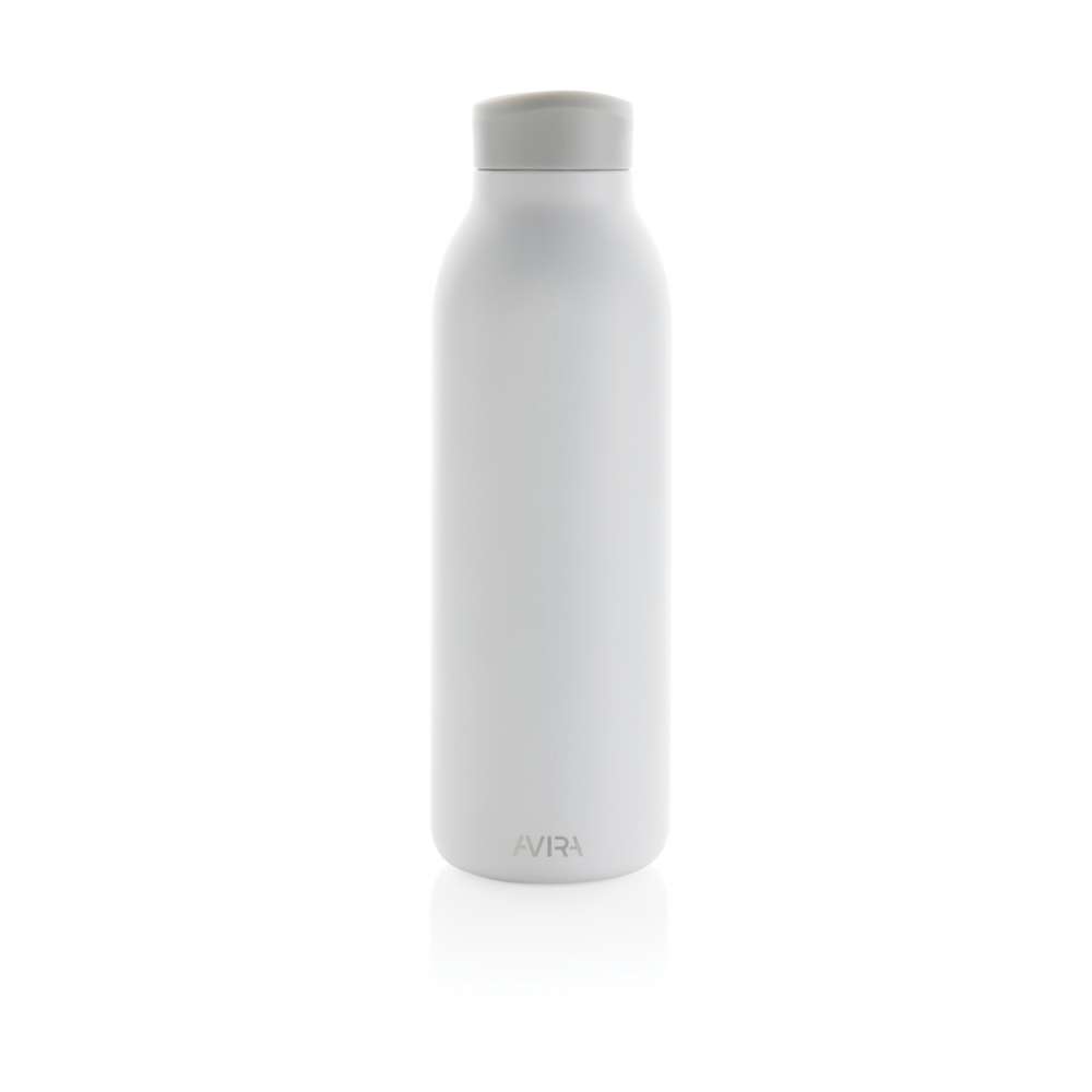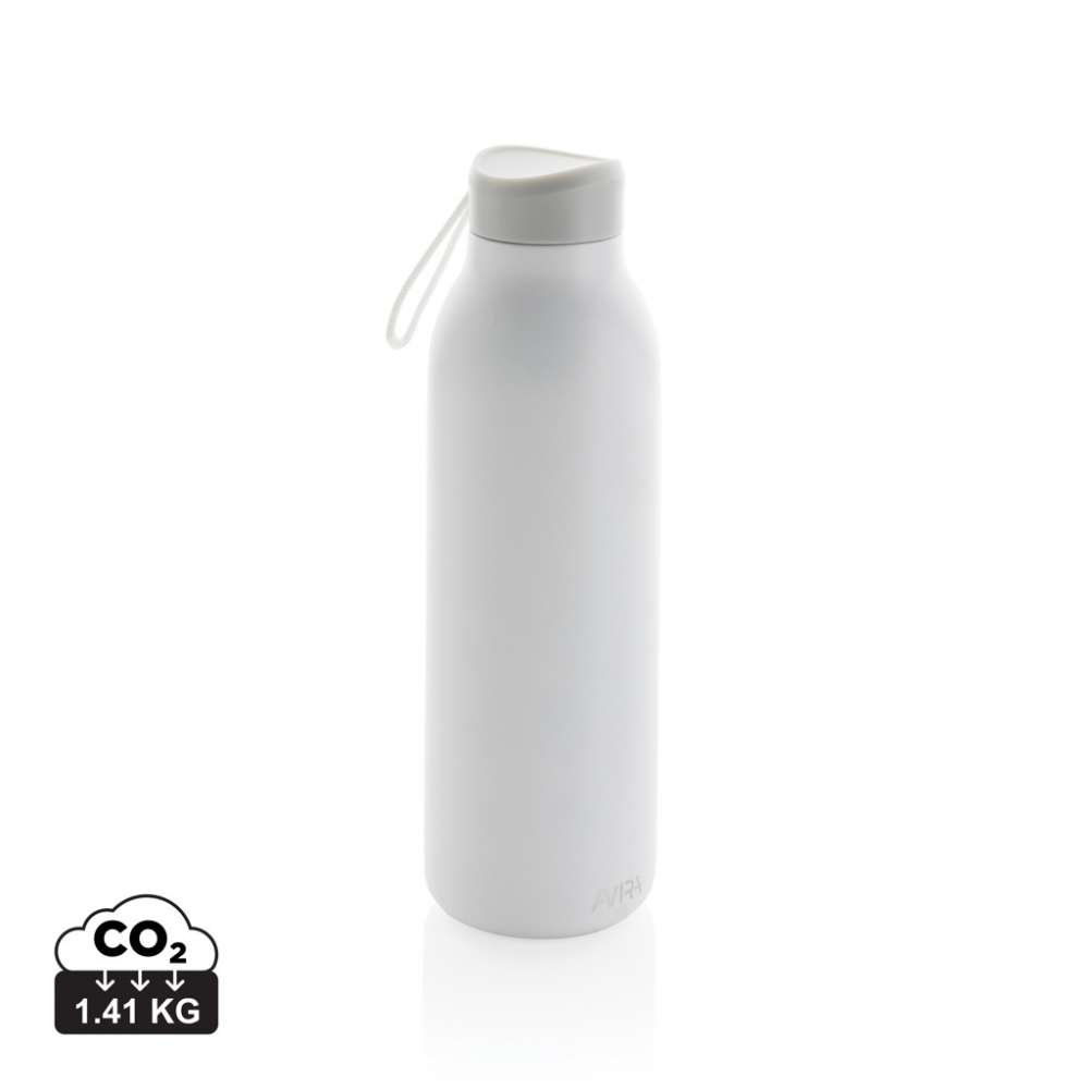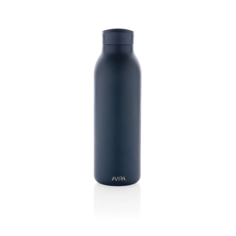 Avior dubbelväggig, vakkumflaska i återvunnen stainless steel håller din dryck kyld i upp till 20 timmar och varm upp till 10 timmar. Flaskans storlek passar nästan alla bilmugghållare. Tillverkad av RCS (Recycled Claim Standard) certifierade återvunna material. RCS certifiering säkerställer en helt certifierad leveranskedja av de återvunna materialen. Totalt återvunnet innehåll: 82% baserat på total produktvikt. BPA-fri. Volym: 500ml. Levereras i FSC®-certifierad kraft förpackning. Kasta inte kartongen, den kan användas som mobilhållare, pennhållare eller varför inte en blomkruka! 2 % av intäkterna från varje såld Impact-produkt doneras till Water.org.