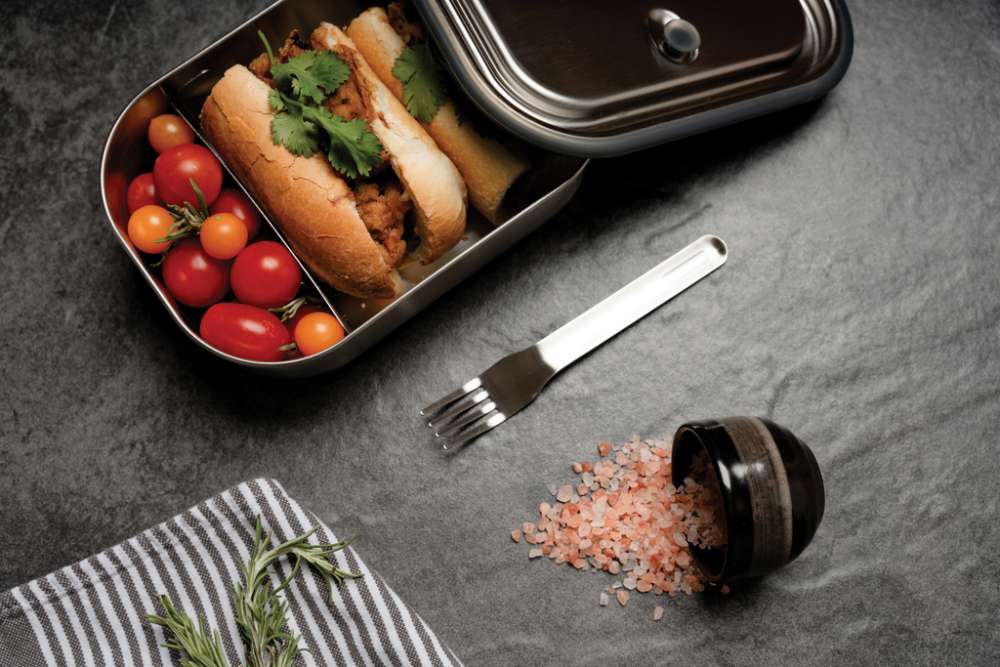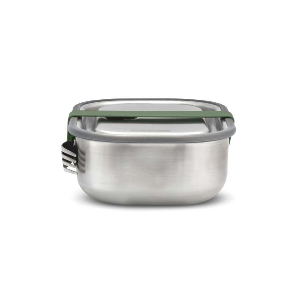 Den första riktigt läckagesäkra lunchlådan i rostfritt stål. Det är en 3 i 1, multifunktionell lunchlåda som gör att du kan transportera din lunch, laga mat i ugnen och till och med förvara färdiglagade måltider i frysen. Den här designen är tillverkad av hållbart rostfritt stål och är perfekt för att transportera dina kulinariska skapelser med stil. Den för tankarna till gamla tiders armé- eller campingkantiner, men har en modern, minimalistisk känsla som kommer att åldras med stil. Silikonventilen skapar en säker vakuumförslutning, den glidande avdelaren gör att du enkelt kan separera innehållet och gaffeln + hållaren har lagts till för enkelhetens skull. Bas+gaffel tål maskindisk. Lock och rem tål endast handtvätt
