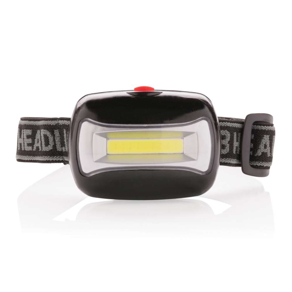 Pannlampa av ABS med mycket starkt ljus, COB LED. Inklusive pannband som passar alla användare. Inklusive batterier.