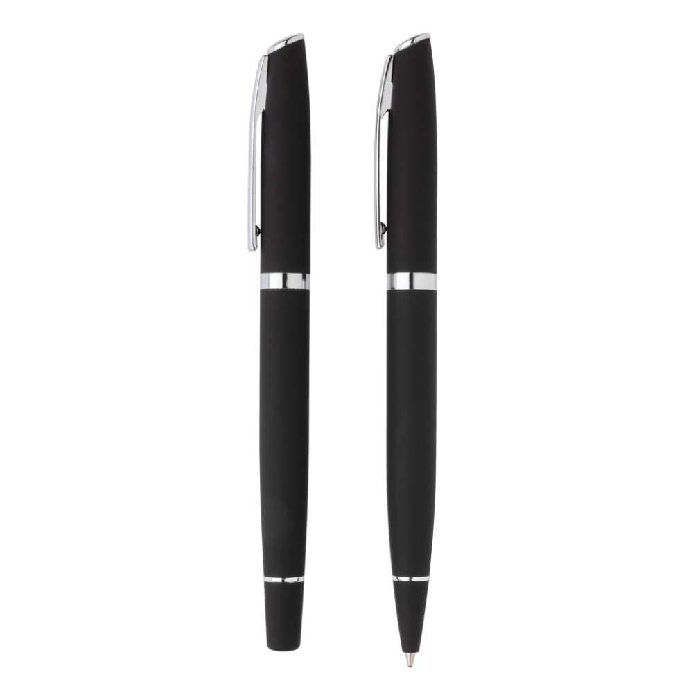 Enkelt men elegant. Den matta finishen ger detta pennset en lyxig utstrålning och gör att de är bekväma att hålla i. Setet består av en kulspetspenna och en rollerball-penna. Båda pennorna har tyskt Dokumental®-bläck för smidig skrift. Kulspetspennan har ca 1200m skrift och rollerball-pennan ca 400m skrift. Levereras i presentkartong.