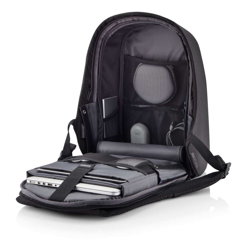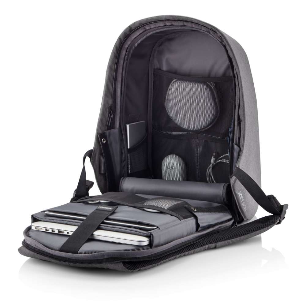 Bobby Hero-serien erbjuder säkerhet, enkelhet och organisation för dina dagliga resor. Skärbeständigt skydd, diskreta dragkedjestängningar och dolda fickor gör att du kan vara säker på att dina tillhörigheter är skyddade under pendlingen. Bobby Hero Regular är utrustad med en integrerad USB-laddningsport, vattenavvisande tyg, lysande säkerhetsremsor och en bagagerem för extra bekvämlighet. Invändigt finns vadderade fack för en 15,6′ laptop och en surfplatta upp till 12,9′. Tillverkad av R-pet-tyg med AWARE™-spårning. Med AWARE™ garanteras användning av äkta återvunnet tyg. 29% återvunnet material. Registrerad design®.