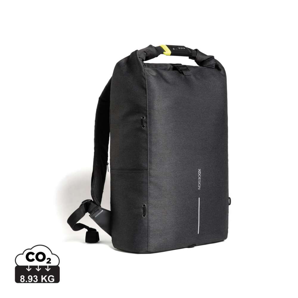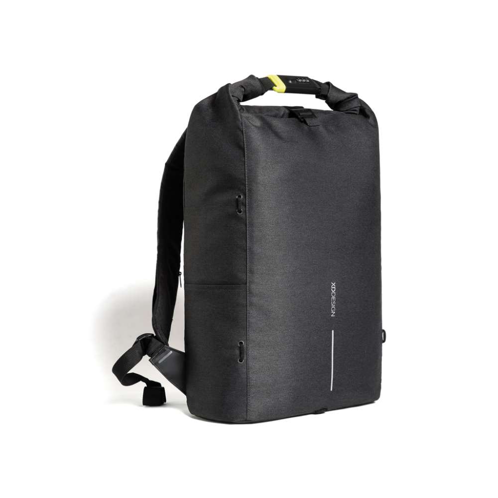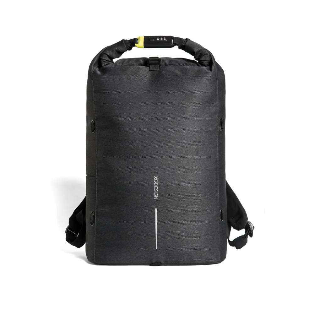 Urban stöldskyddad ryggsäck är det perfekta resesällskapet och ger både säkerhet och bekvämlighet. Genom att rulla upp huvudfacket och säkra det med det stålförstärkta kombinationslåset kan ryggsäcken stängas helt, låset kan också användas för att låsa väskan runt ett fast föremål. Dolda fickor på baksidan och i axelremmen, med RFID-skydd, skyddar dina kort. Väskan är utrustad med en sidoficka för vattenflaskor och ett avtagbart elastiskt nät för sportutrustning. Invändigt finns vadderade fack för en 15,6′ laptop och en surfplatta upp till 12,9′ samt nätfickor för organisering av dina viktigaste tillhörigheter. Tillverkad av vattenavvisande material. Registrerad design®.