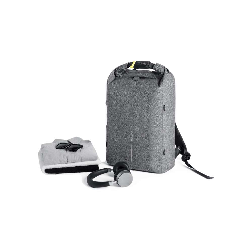 Den stöldskyddade och skärbeständiga ryggsäcken Urban är ditt ultimata resesällskap. Huvudfacket är tillverkat av högkvalitativt stöldsäkert tyg och erbjuder skydd med ett stålförstärkt kombinationslås, som också kan användas för att låsa väskan runt ett fast föremål. Dolda fickor på baksidan och i axelremmen ger RFID-skyddat utrymme för kort. Väskan har en sidoficka för vattenflaska och ett avtagbart elastiskt nät för sportutrustning. Invändigt finns vadderade fack för en 15,6′ laptop, en surfplatta upp till 12,9′ och nätfickor för bättre organisering av dina nödvändigheter. Registrerad design®.