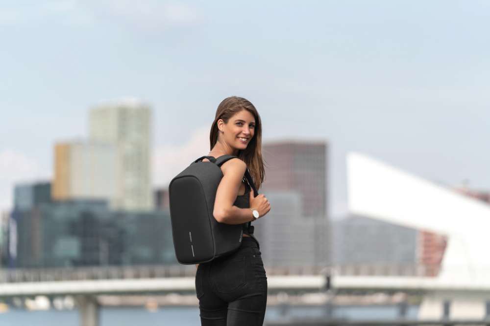 Bobby Hero-serien erbjuder säkerhet, enkelhet och organisation för dina dagliga resor. Skärbeständigt skydd, diskreta dragkedjestängningar och dolda fickor gör att du kan vara säker på att dina tillhörigheter är skyddade under pendlingen. Bobby Hero Small är utrustad med en integrerad USB-laddningsport, vattenavvisande tyg, lysande säkerhetsremsor och en bagagerem för extra bekvämlighet. Invändigt finns vadderade fack för en 13,3′ laptop och en surfplatta på upp till 12,9′. Tillverkad av R-pet-tyg med AWARE™-spårning. Med AWARE™ garanteras användning av äkta återvunnet tyg. 25% återvunnet material. Registrerad design®.