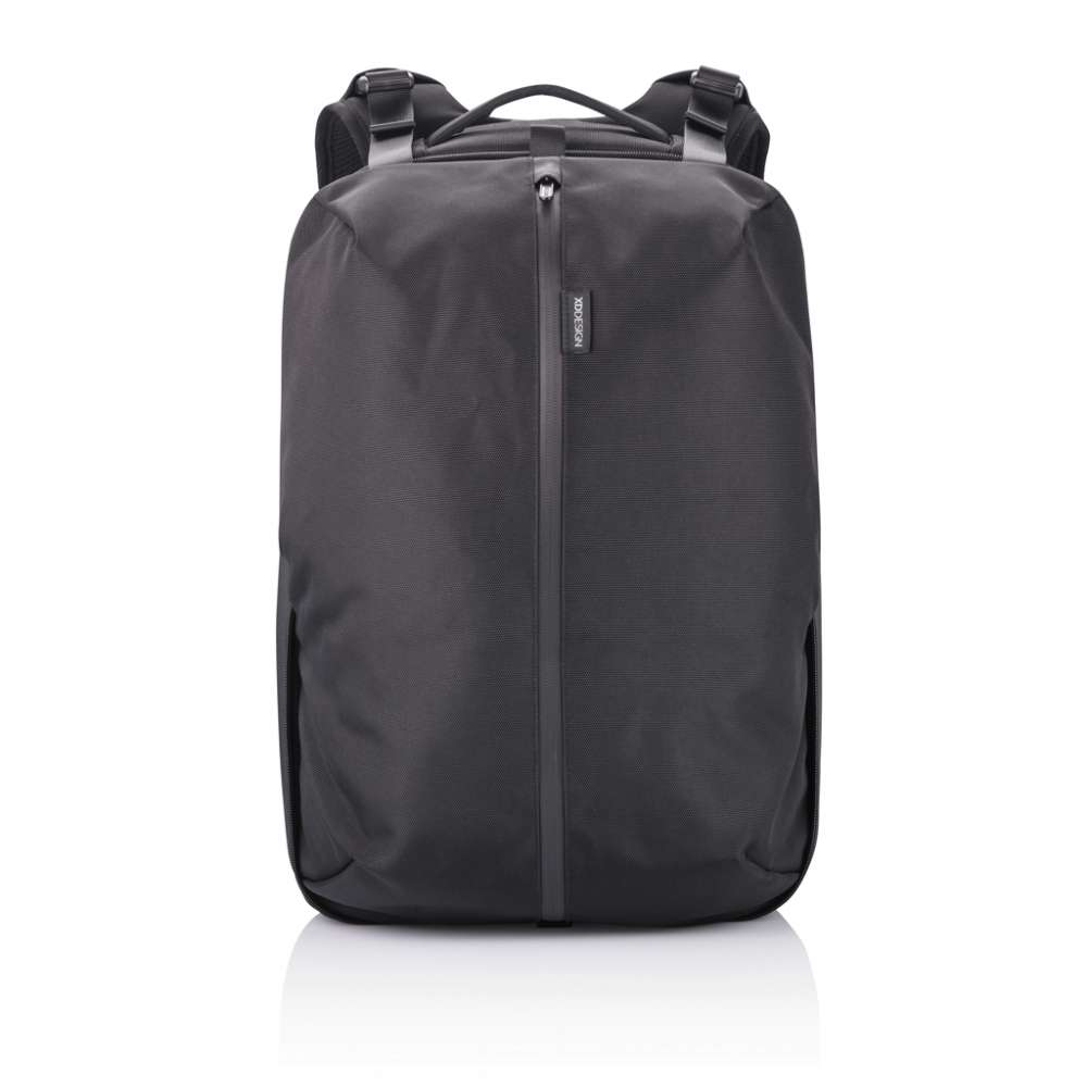 Flex Gym-väskan är flexibel och praktisk och är en ryggsäck och gymväska i en och samma väska. Du kan snabbt omvandla ryggsäcken från business- till gymväska genom att utöka frontfacket från 16 till 24 liter. Den stöldskyddade designen utan åtkomst framifrån och dolda dragkedjor i huvudfacket gör att du kan bära dina tillhörigheter på ett säkert sätt. Med den RFID-skyddade fickan på baksidan kan du förvara plånbok, mobiltelefon eller kreditkort på ett säkert sätt. Dessutom har ryggsäcken en snabb USB-laddningsport på axelremmen där du också hittar en hållare för solglasögon. Flex Gym-väskan är den perfekta ryggsäcken oavsett om du är på väg till jobbet, universitetet eller gymmet. Tillverkad av R-pet-tyg med AWARE™-spårare. Med AWARE™ garanteras användning av äkta återvunnet tyg. 42% återvunnet material. Registrerad design®.