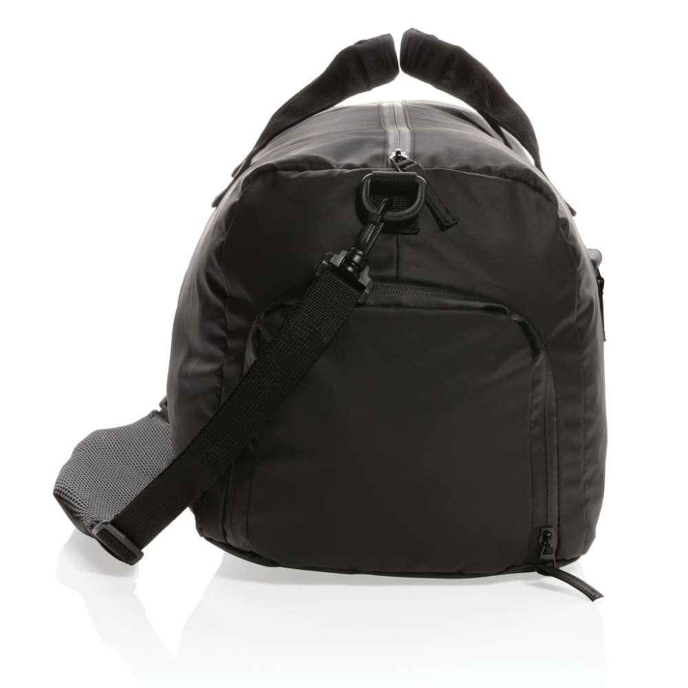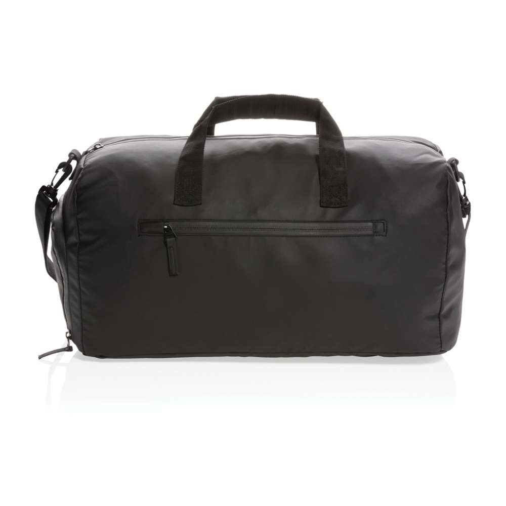 Elegant weekendväska i PU. Stort huvudfack med plats för alla dina tillhörigheter för en minisemester. Kan tas med som handbagage. PVC-fri.