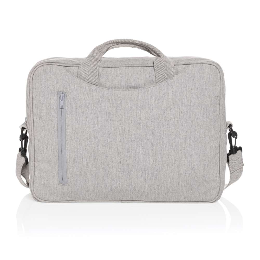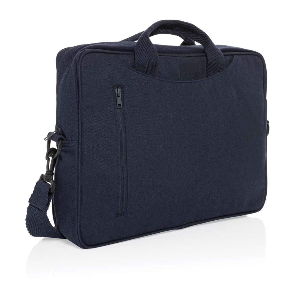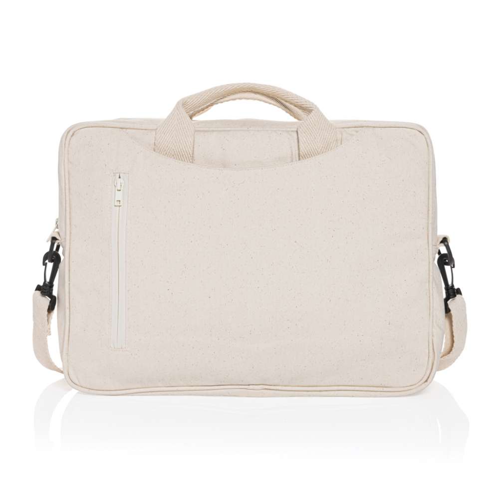 Laluka AWARE™ laptopväska i återvunnen bomullstwill har en vadderad laptopficka med kardborrestängning med plats för 15.4′ laptops samt praktiska framfickor för enkel organisering. Väskans robusta handtag i återvunnen canvas och justerbar rem erbjuder både stil och komfort. Tygvikt 340 g/m². Tillverkad av återvunnen bomull med AWARE™-spårning. 2% av intäkterna från varje produkt som säljs med AWARE™ kommer att doneras till Water.org.