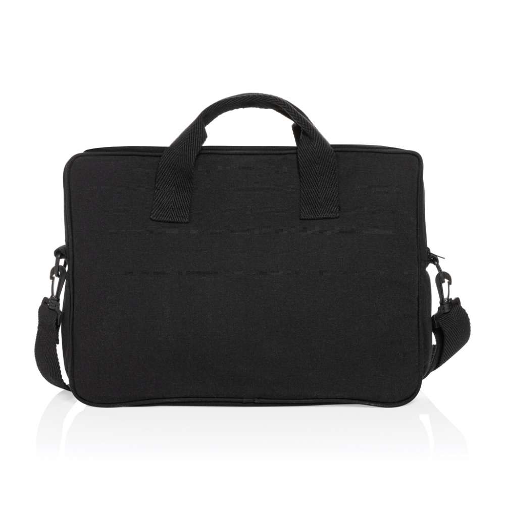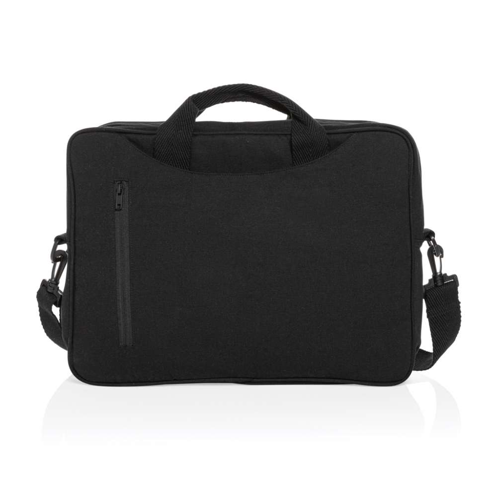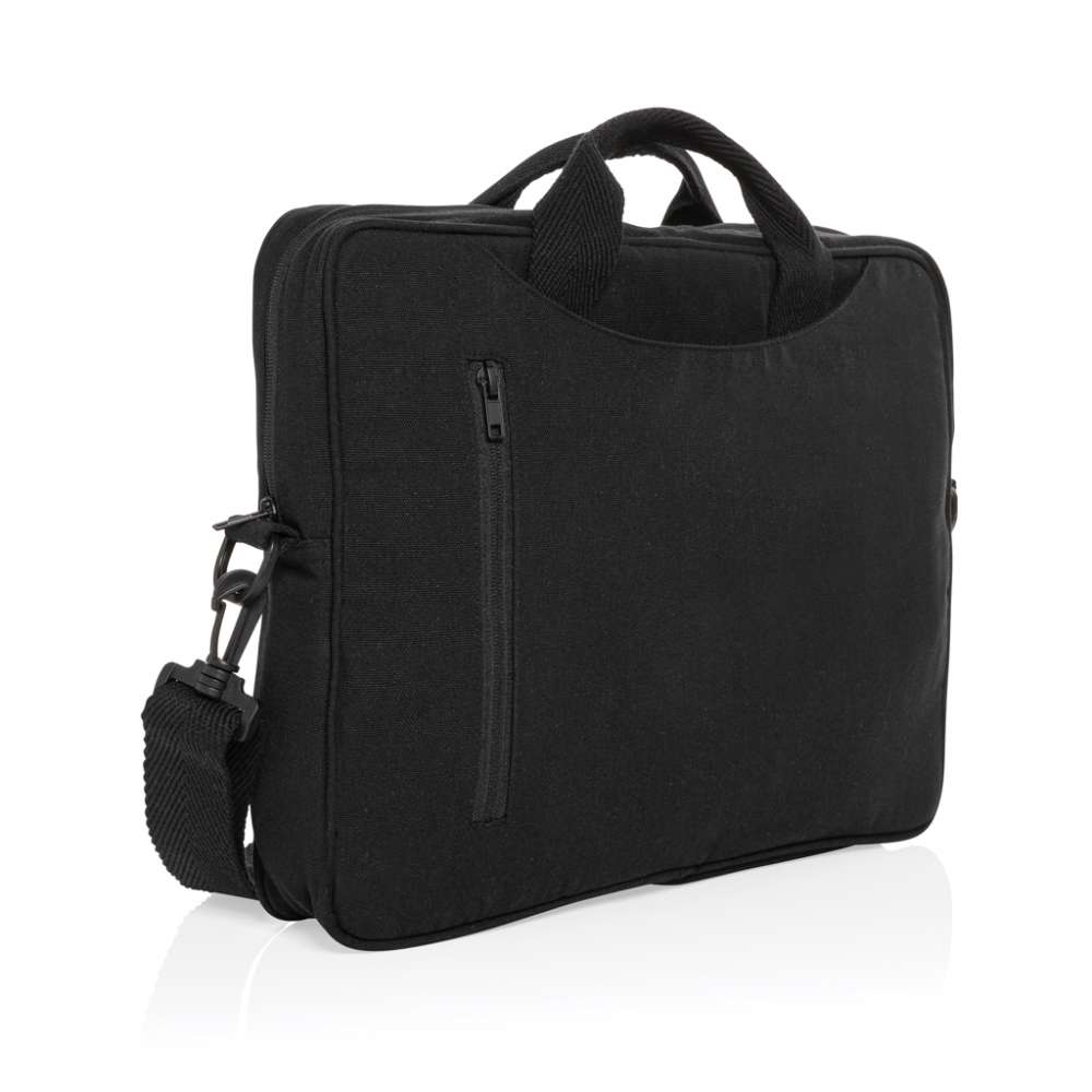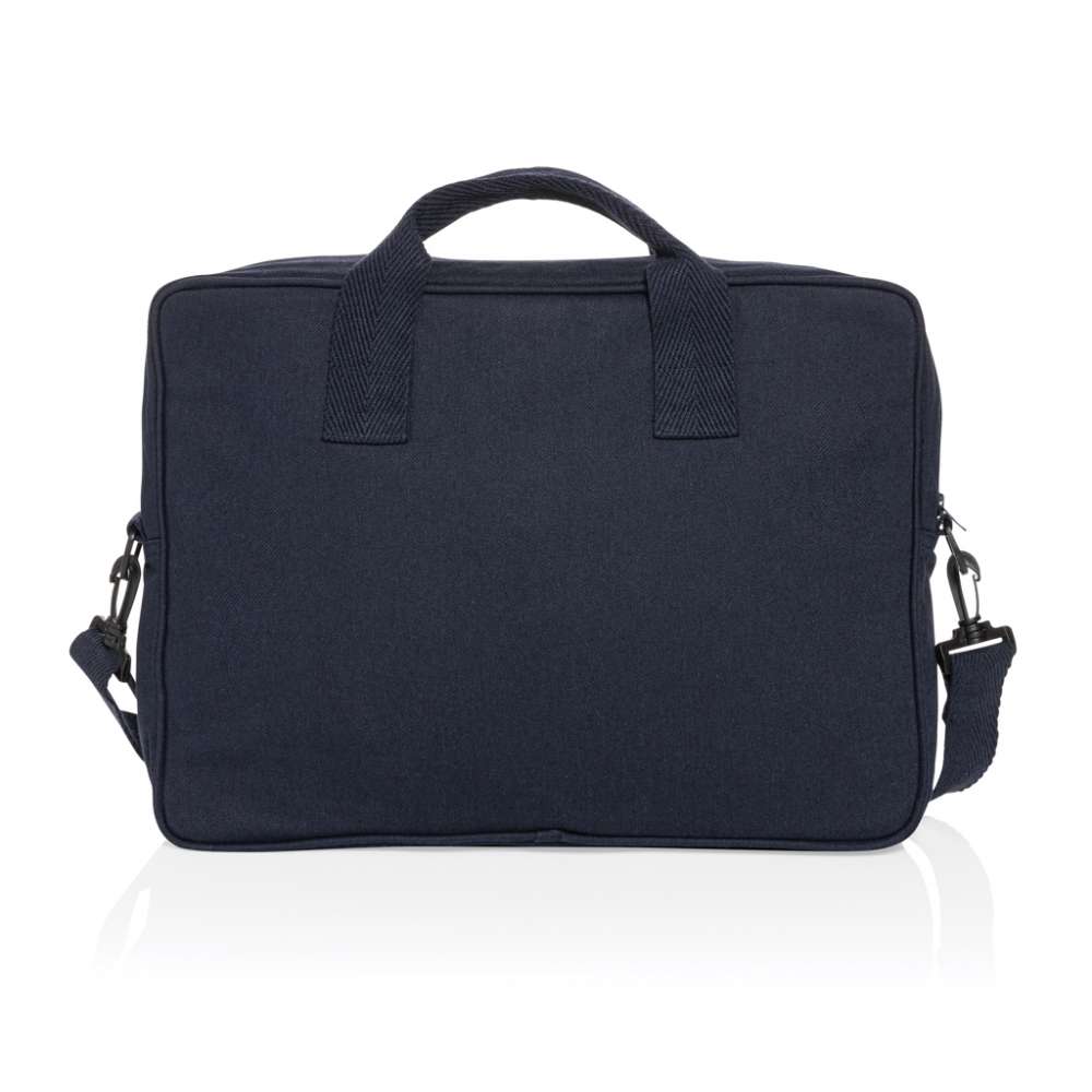 Laluka AWARE™ laptopväska i återvunnen bomullstwill har en vadderad laptopficka med kardborrestängning med plats för 15.4′ laptops samt praktiska framfickor för enkel organisering. Väskans robusta handtag i återvunnen canvas och justerbar rem erbjuder både stil och komfort. Tygvikt 340 g/m². Tillverkad av återvunnen bomull med AWARE™-spårning. 2% av intäkterna från varje produkt som säljs med AWARE™ kommer att doneras till Water.org.