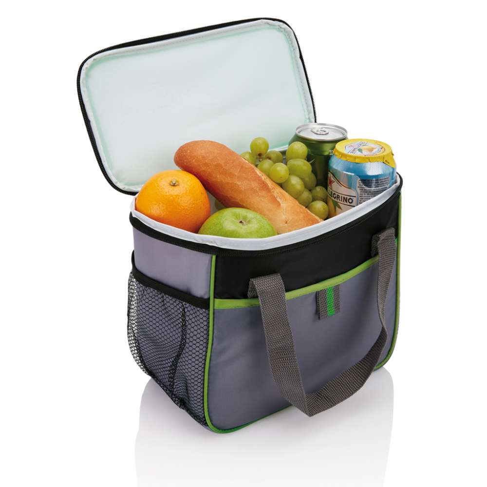 Oavsett om du tar med den på en match, på picknick eller när du kampar finns det gott om utrymme för det du vill hålla kallt i den här kylväskan av 210D polyester. Gott om utrymme för både ett sexpack och lunch. PVC-fri.