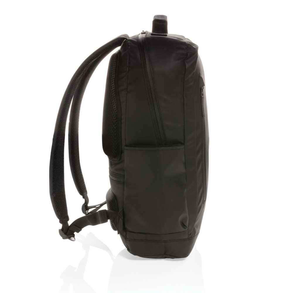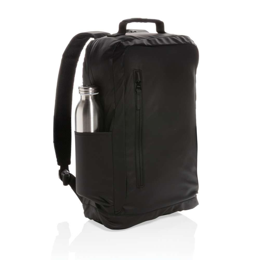 Elegant laptopryggsäck i PU. Stort huvudfack med plats för alla dina tillhörigheter och ett laptopfack med plats för 15.6′ laptop. PVC-fri.