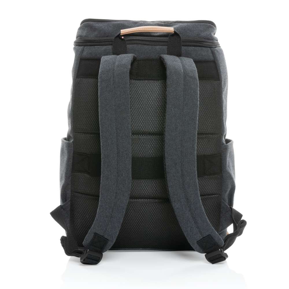 Laptopryggsäck i 16 oz. återvunnen canvas perfekt för daglig pendling. Djupt vertikalt frontfack och ett rymligt huvudfack med ett 15′ laptopfack. 2% av intäkterna för varje såld Impact-produkt kommer att doneras till Water.org. 60% återvunnen bomull och 40% återvunnen polyester. Foder i 150D återvunnen polyester.
