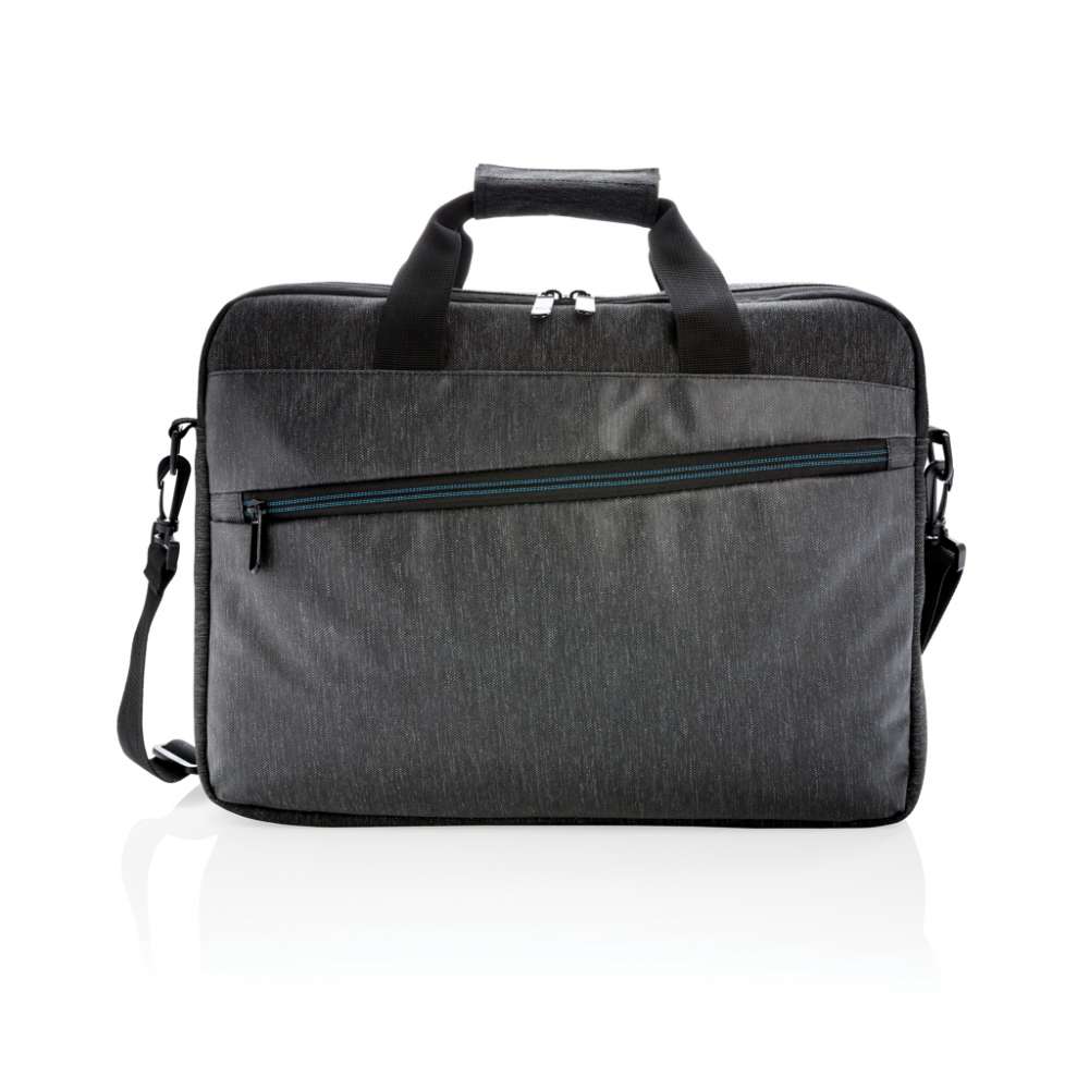 900D laptopväska med plats för 15′ laptop i huvudfacket, blixtlåsförsett frontfack. Förstärkta handtag och vadderad axelrem erbjuder olika bärmöjligheter. PVC-fri.