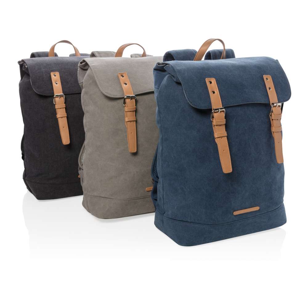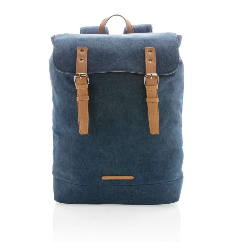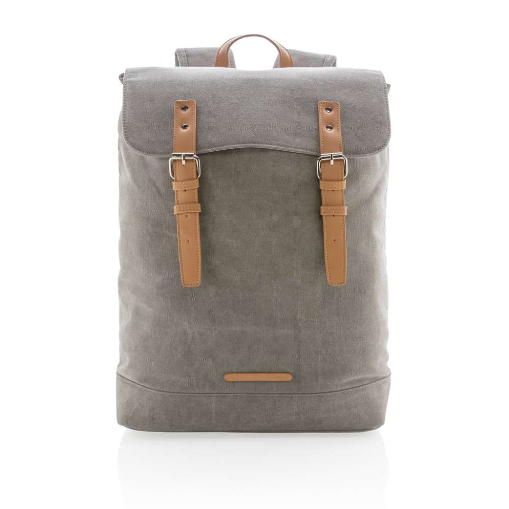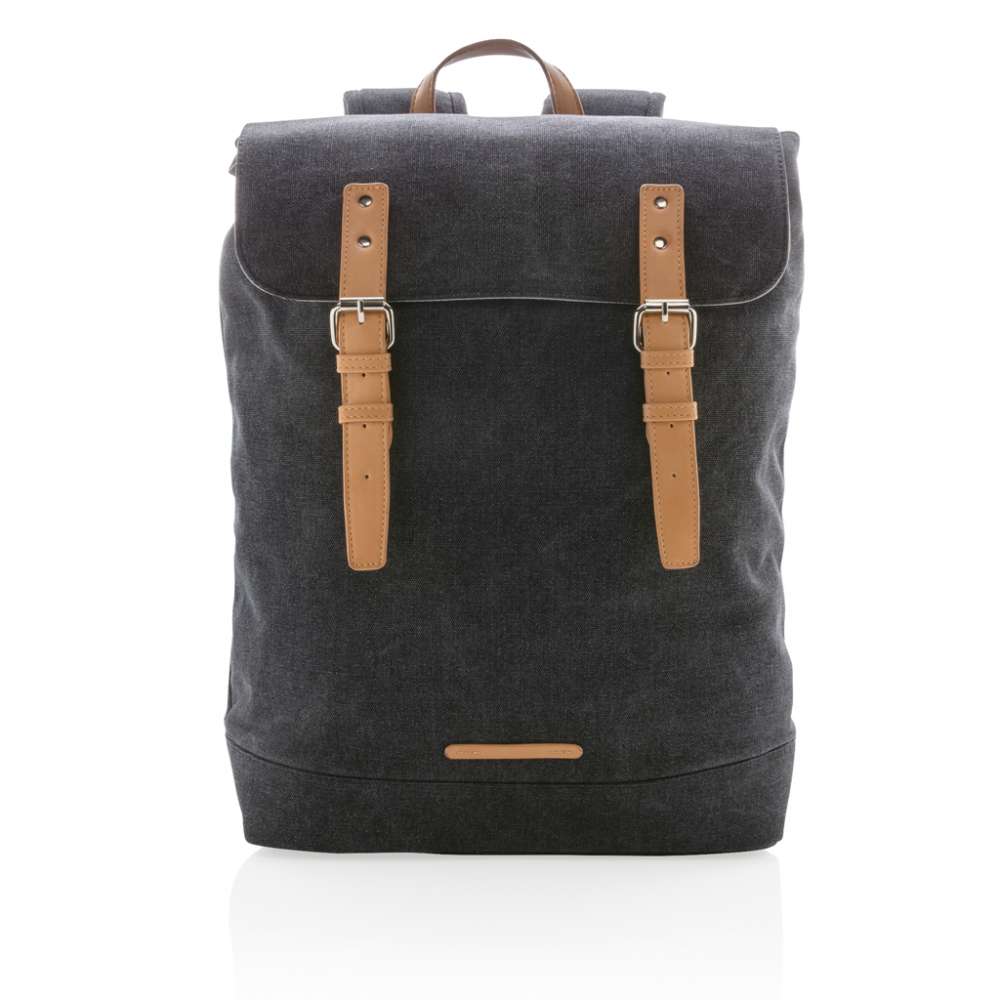 Packa alla dina tillhörigheter i denna hållbara canvasryggsäck. Vadderat laptopfack med plats för 15.6′ laptop. Locket stängs med två magnetiska spännen i läderimitation. PVC-fri.