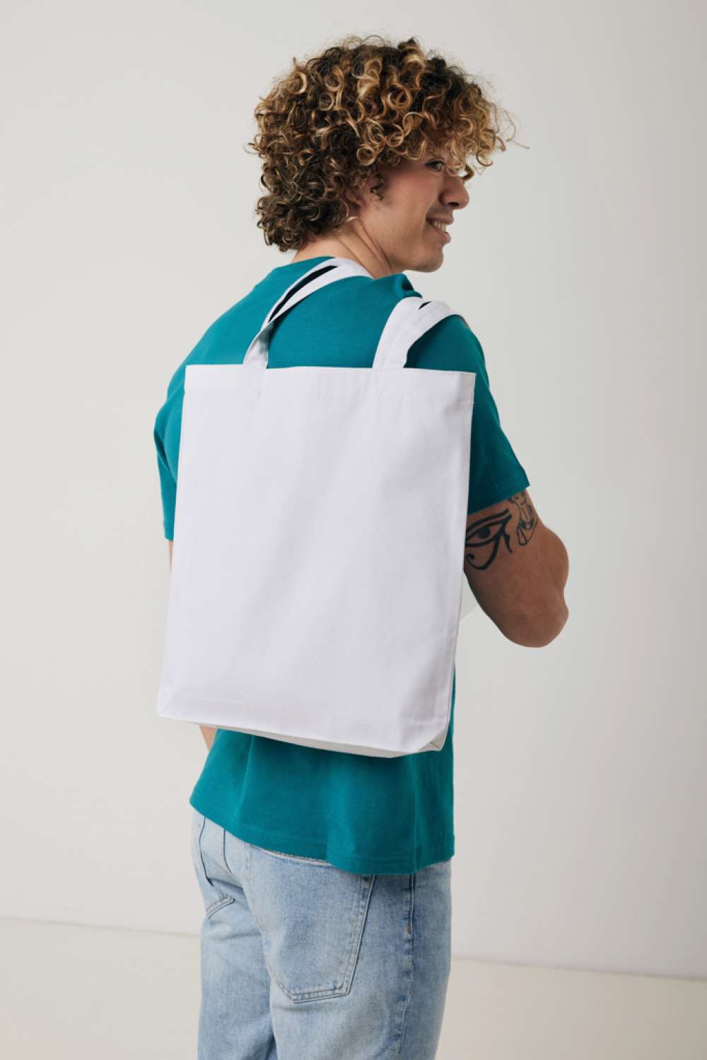 Ingen greenwashing, utan fakta om hållbarhet! Produkterna i Impact-kollektionen har ett AWARE™ spårämne. Genom att använda AWARE™ disruptiva fysiska spårämne och blockchain-teknologi kan vi bevisa vårt påstående om att genuint återvunna material använts och att vatten har sparats. Spara vatten och använd genuint återvunna tyger. Vid produktion av en vanlig bomullskasse går det åt 1200 liter vatten. AWARE™ återvunnen bomull kräver knappt något vatten. Med fokus på vatten, 2% av intäkterna för varje såld Impact-produkt kommer att doneras till Water.org. Praktisk shoppingkasse (330 g/m2) tillverkad av 100% återvunna material med Aware™ spårämne. Stilren design med två handtag så att kassen kan hängas på axeln eller bäras. En äkta hållbar och användbar kasse för dagligt bruk.